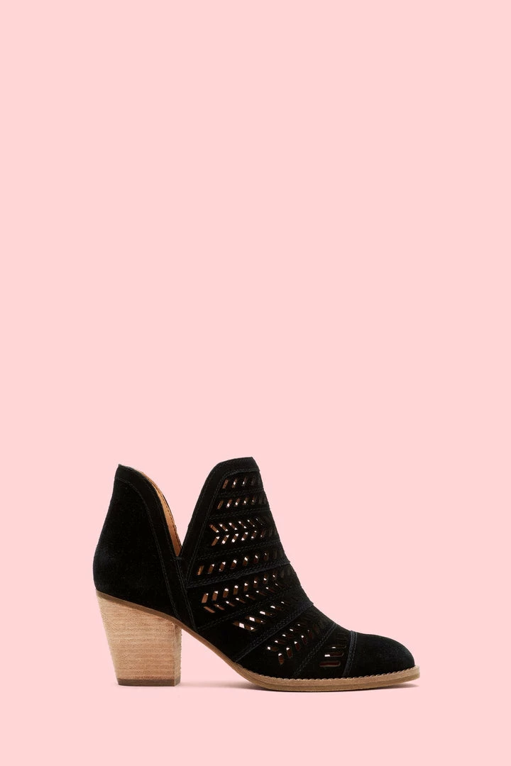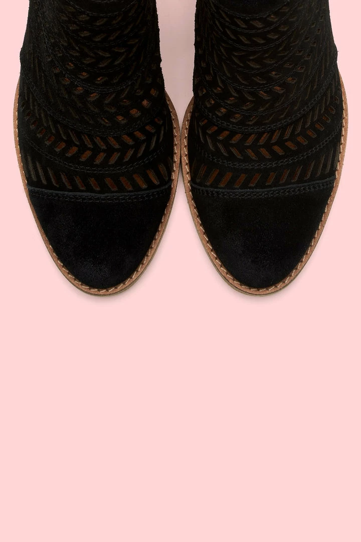 Handcrafted from ultra-soft suede, this handcrafted bootie features a feather-inspired, perforated design that boasts major artisanal attitude. Set on a leather-wrapped mid-heel, the recycled leather and rubber outsole deliver comfort that will last you from sunrise to sundown.
