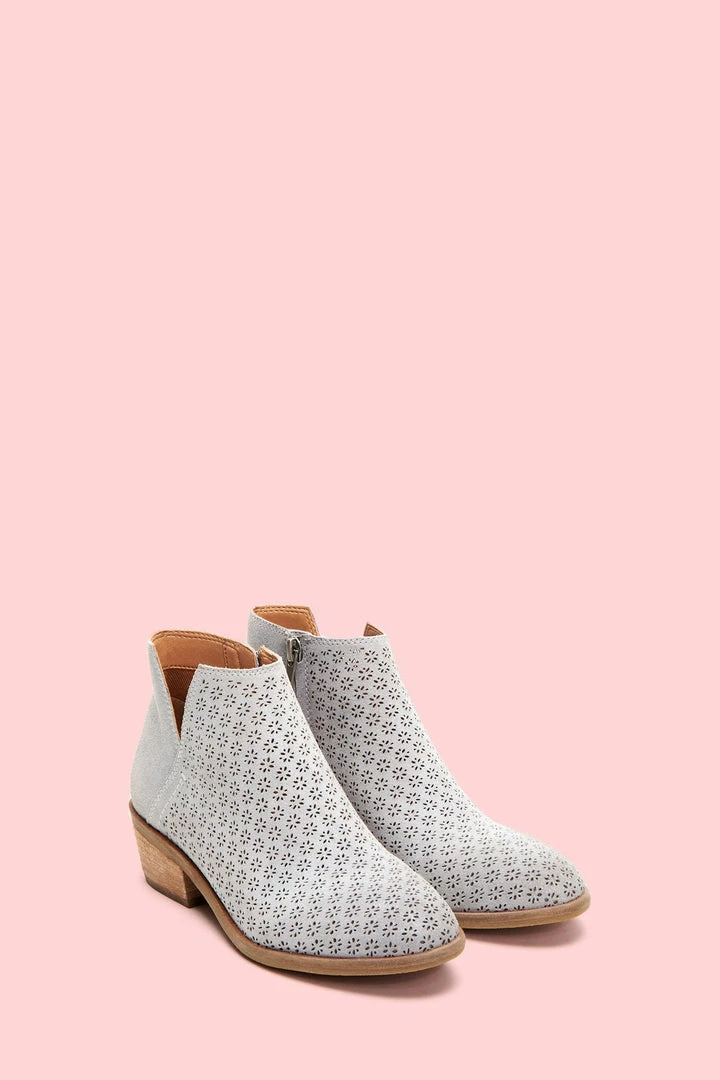 A feminine take on Western attitude. Handmade from s ultra-soft suede, this bootie stands out with its cutout side, perforation and rounded toe. Perfect for any warm weather adventure, wear it with or without socks for a kicked-back vibe. Set on a leather-wrapped heel, it features a convenient back zip. The flexible outsole in recycled leather offers long-lasting comfort every step of the way.