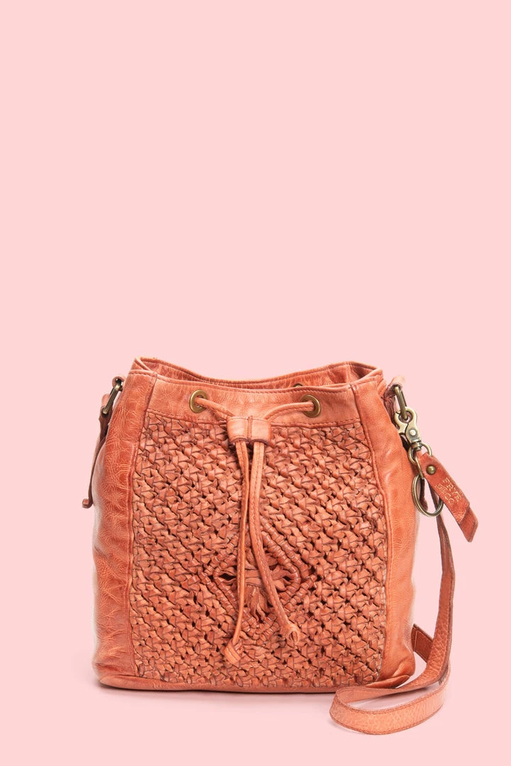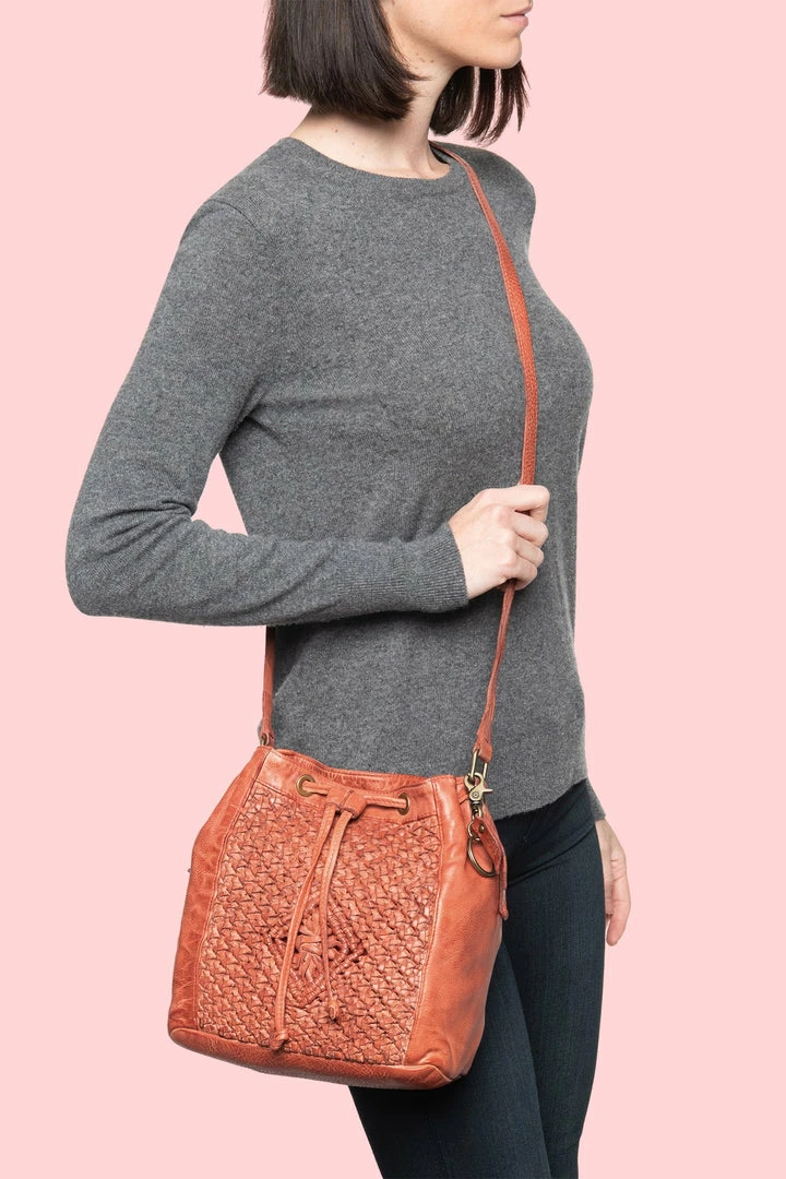This bucket bag is crafted from supple leather and dip-dyed for that tonal, one-of-a-kind effect. With the removable fob, interior pockets keep your things organized and within reach. The artisan-inspired, woven leather detailing boasts a distinctly handmade feel, while the magnetic snap and drawstring closures keep everything secure. – 100% cotton lining