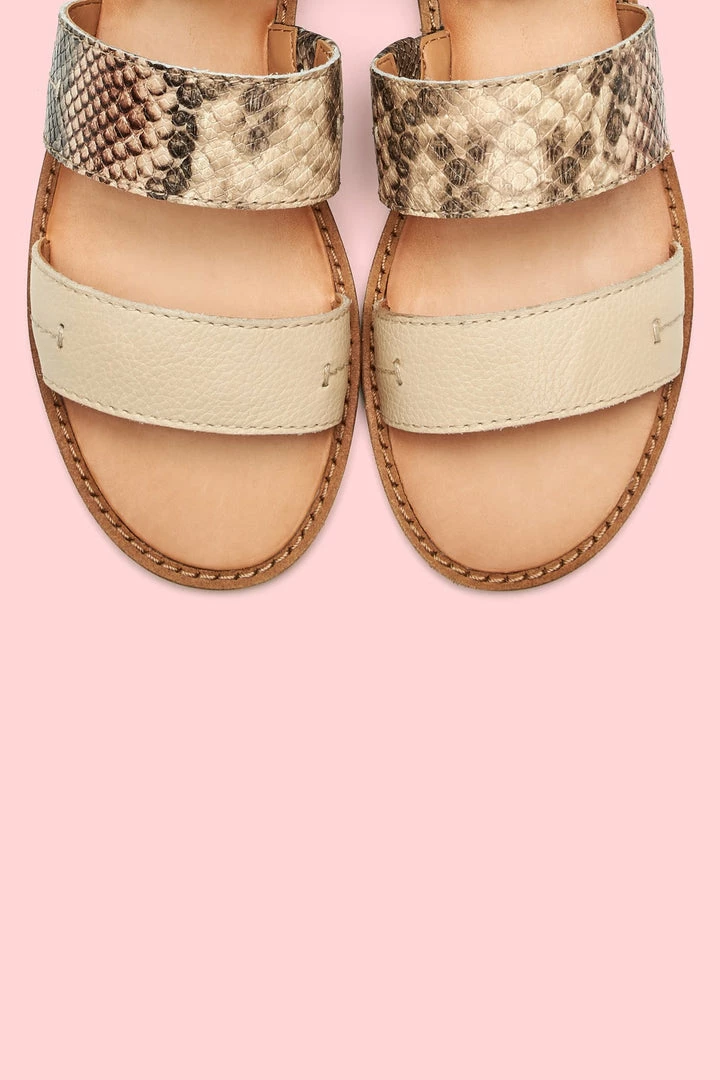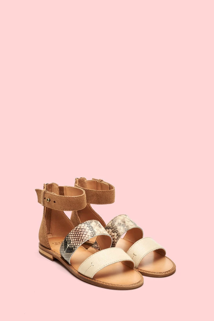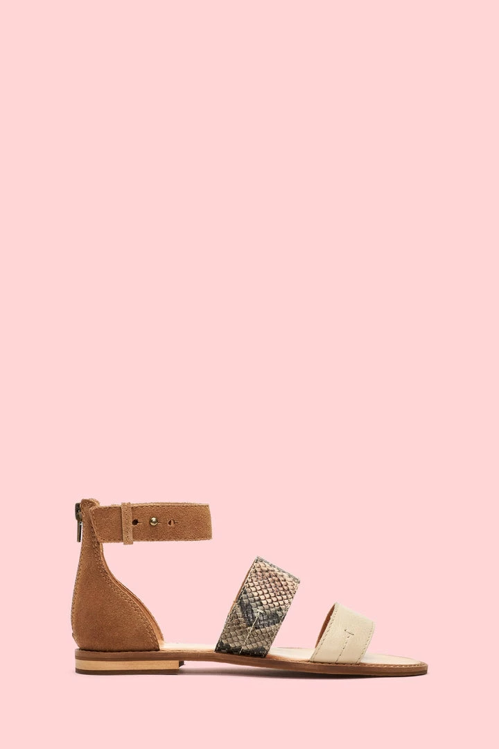 That sandal your wardrobe needs. Fashioned from a mix of suede and snake-embossed and waxy leathers, this ankle strap sandal makes a bold statement. Making steps towards sustainability, it features a recycled wood heel anchored by recycled leather welt. The comfortable rubber outsole and convenient back zip make this style effortless.
