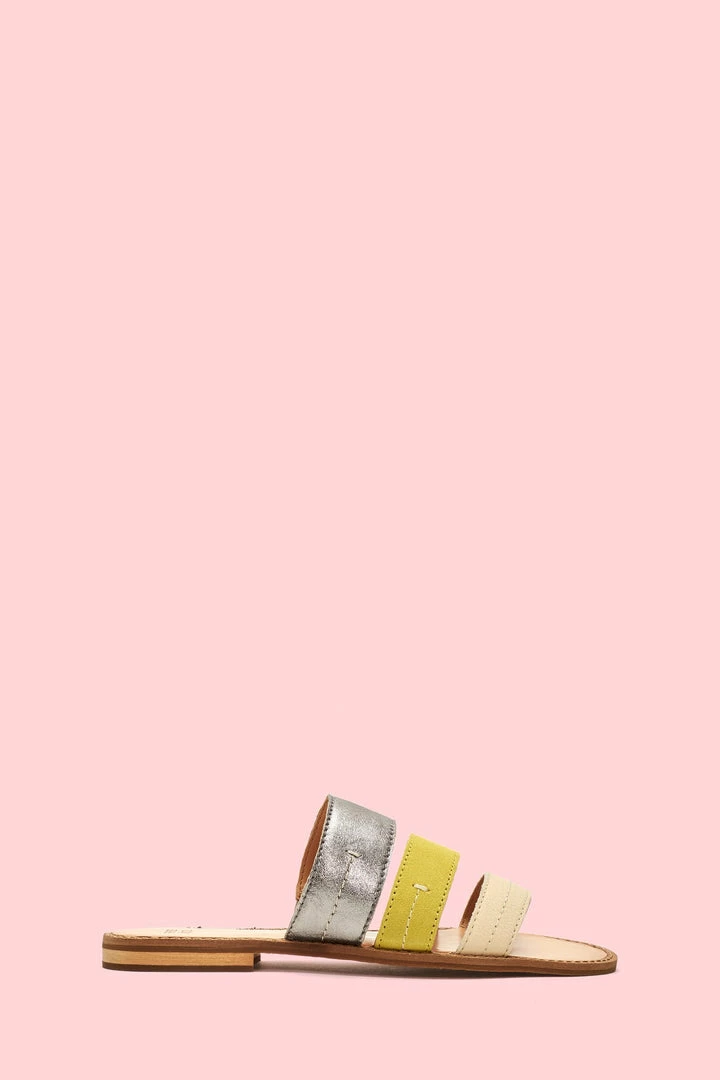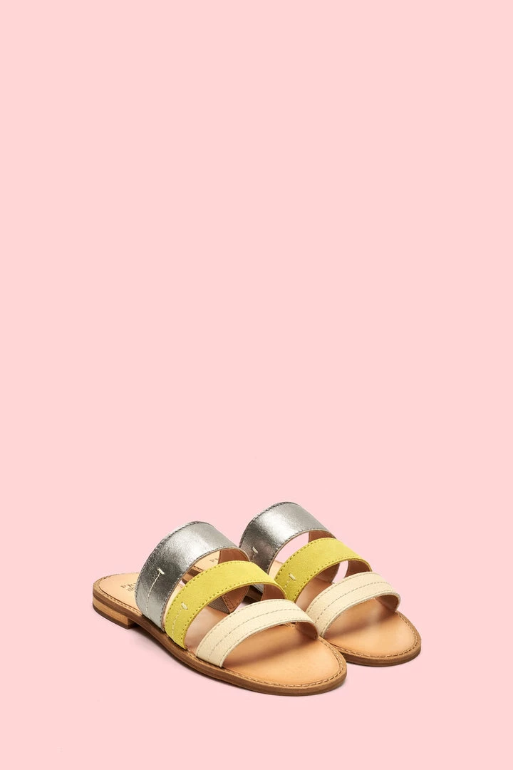Handmade from suede, and hand-treated full grain leathers, this sandal boasts bold, wide straps for a high-contrast look. A recycled wood heel anchored by a recycled leather welt give it a sustainable point of view. With a flexible rubber outsole and hidden gore for effortless fit, this style goes beachside and beyond.