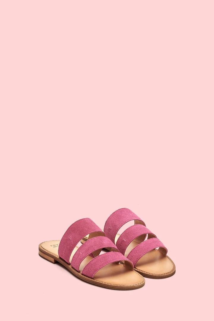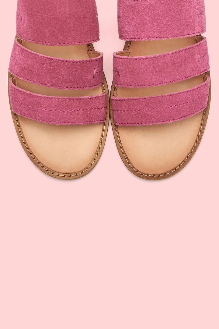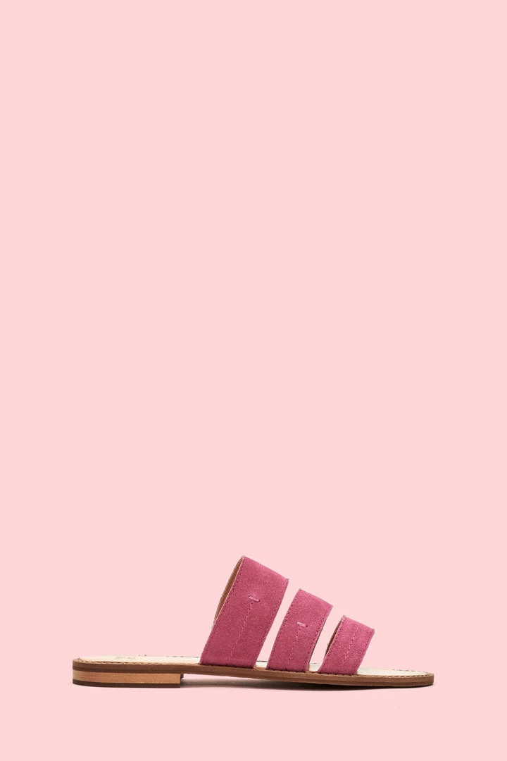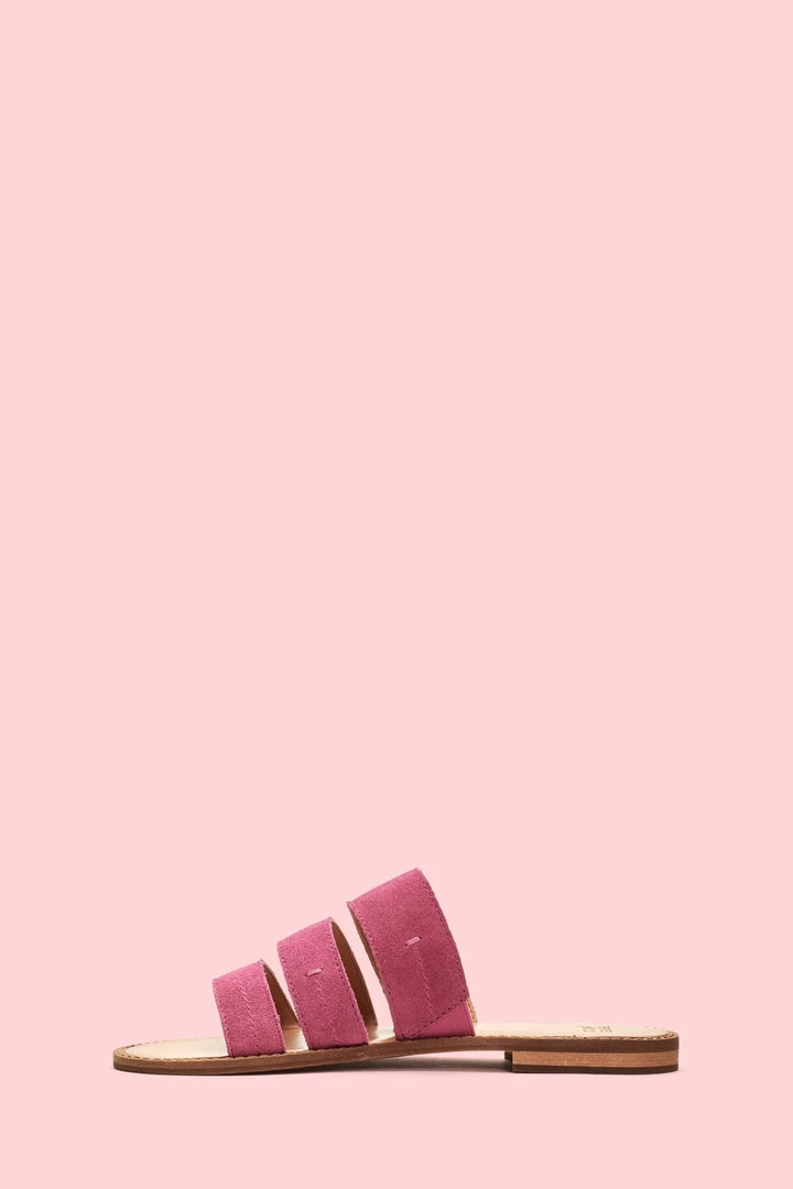 Handmade from ultra-soft suede, this sandal boasts bold, wide straps for a high-impact look. A recycled wood heel anchored by a recycled leather welt give it a sustainable point of view. With a flexible rubber outsole and hidden gore for effortless fit, this style goes beachside and beyond.