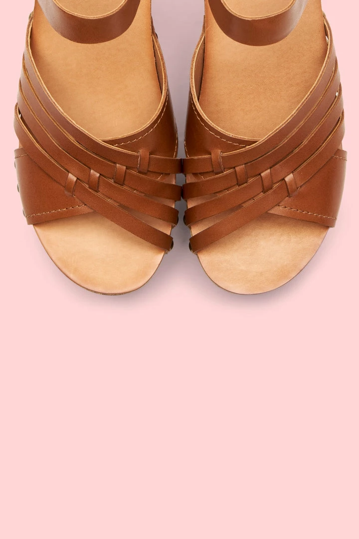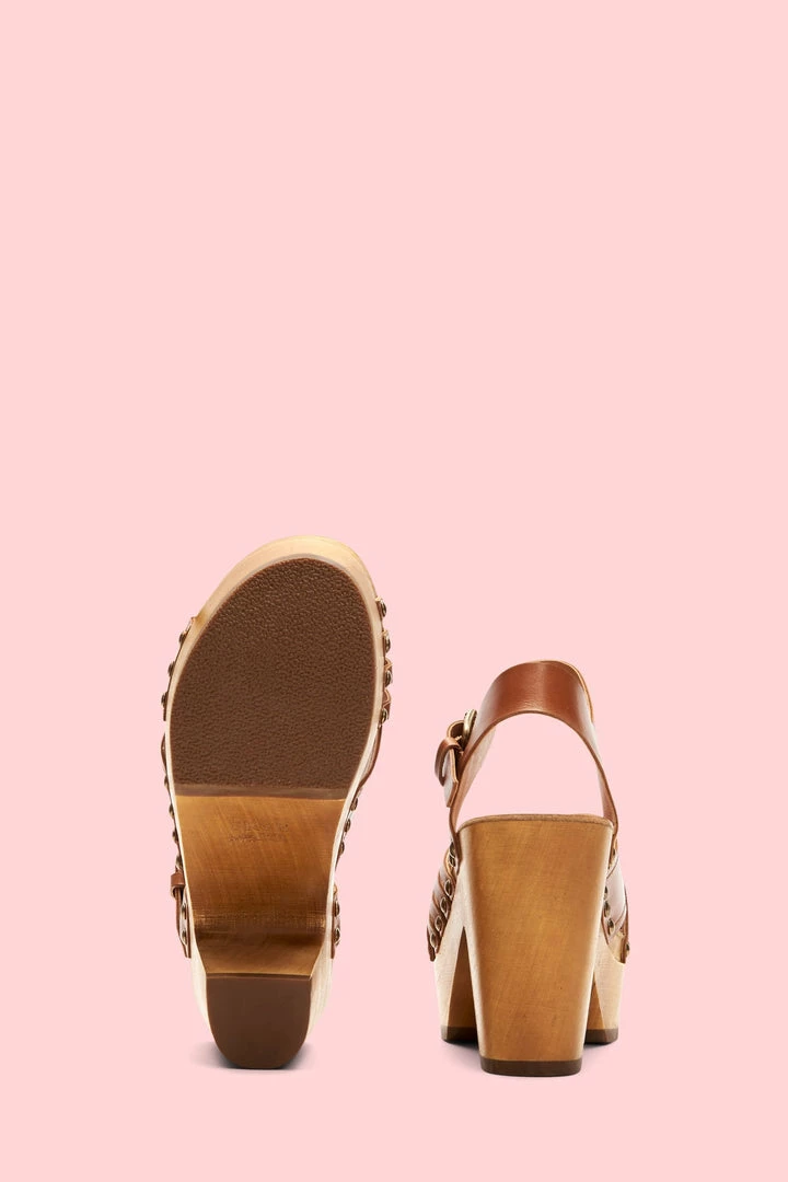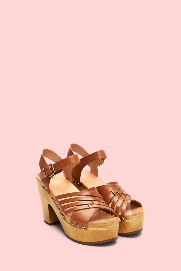 Turn up the volume in this fashion-forward clog. Crafted from waxed leather, this platform sandal-meets-clog stands out with its beautifully woven straps and angled heel. The sturdy, recycled wood outsole offers all-day wearability from a sustainable point of view. With an elasticated ankle strap for that perfect fit and ultra-comfortable padded footbeds, you’ll want to wear these on repeat.– Man made lining
