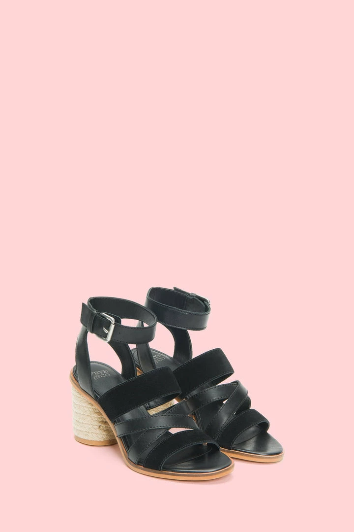 Style that makes an impact. Made from waxed leather and suede, this ankle sandal stands out with its jute-wrapped, oval heel. The recycled wood heel anchored by a recycled leather welt gives it a sustainable point of view. The hidden gore offers a perfect fit, while the wrapped, padded insole delivers total comfort every step of the way.– Man made lining