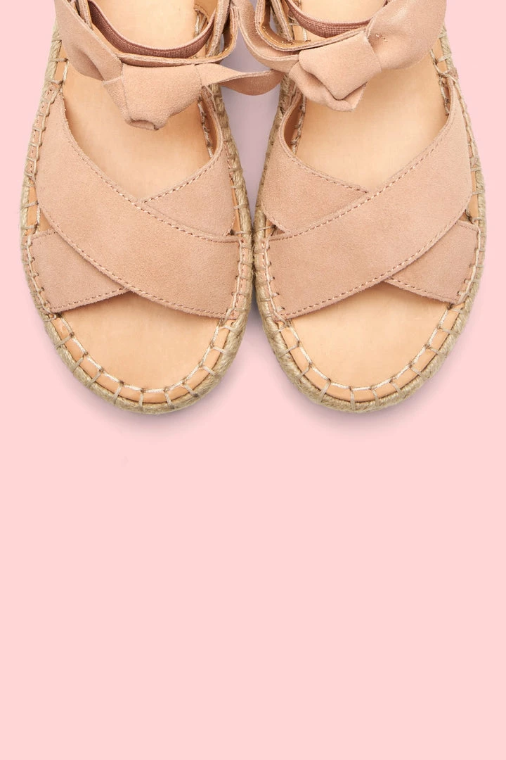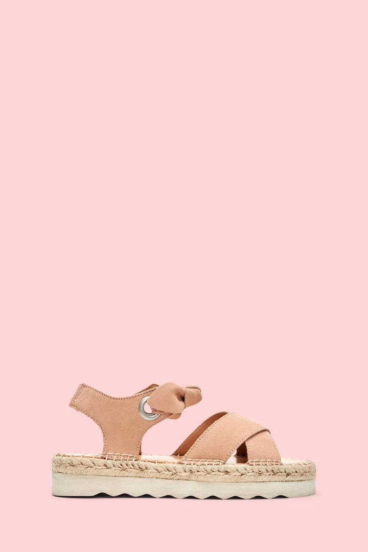 Designed in supple suede accented with bold grommets and an ankle tie, this platform sandal offers a feminine look with a bit of edge. With traditional espadrille blanket-stitching along the footbed, it boasts two hidden gores that make slipping on and off a breeze. The lightweight, textured EVA sole offers durability and long-lasting comfort everywhere from the boardwalk to the rooftop.– Man made lining
