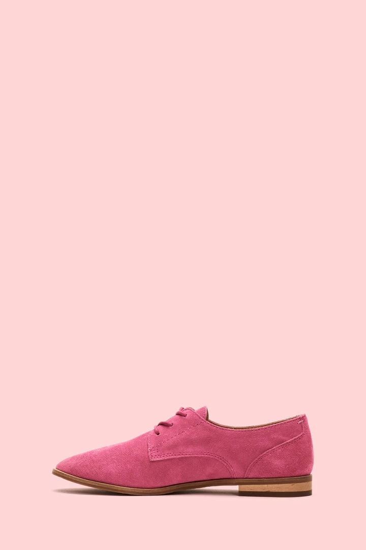 Handmade from soft suede, this is an updated take on the classic oxford. Set on a recycled wood heel, this style is unlined for an ultra-soft, second skin feel. The rubber outsole and padded footbeds cushion your every step, while the hidden eyelets and tonal laces deliver a streamlined finish.