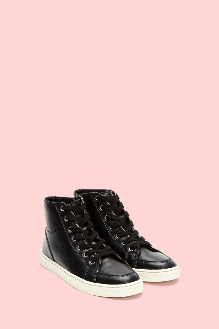 These high-top sneakers includes iconic design details you need to know about, especially the moto zips. They’ve been made from polished leather and have cotton laces and rubber soles.– Cotton twill lined