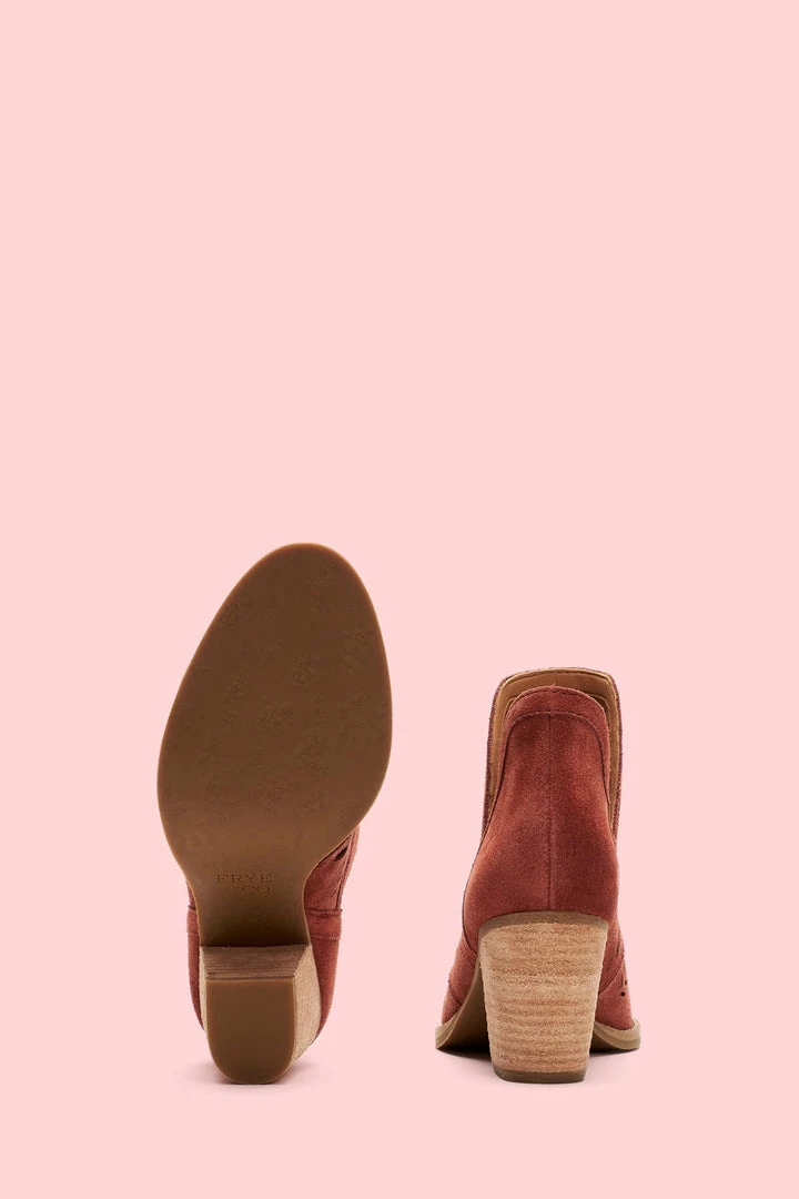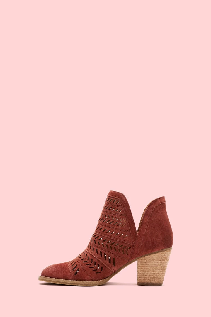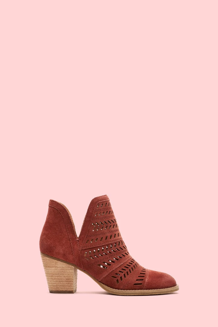 Handcrafted from ultra-soft suede, this handcrafted bootie features a feather-inspired, perforated design that boasts major artisanal attitude. Set on a leather-wrapped mid-heel, the recycled leather and rubber outsole deliver comfort that will last you from sunrise to sundown.