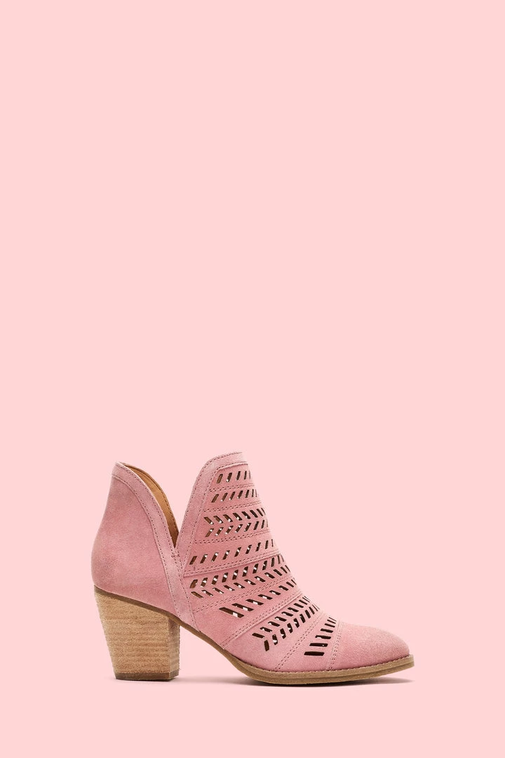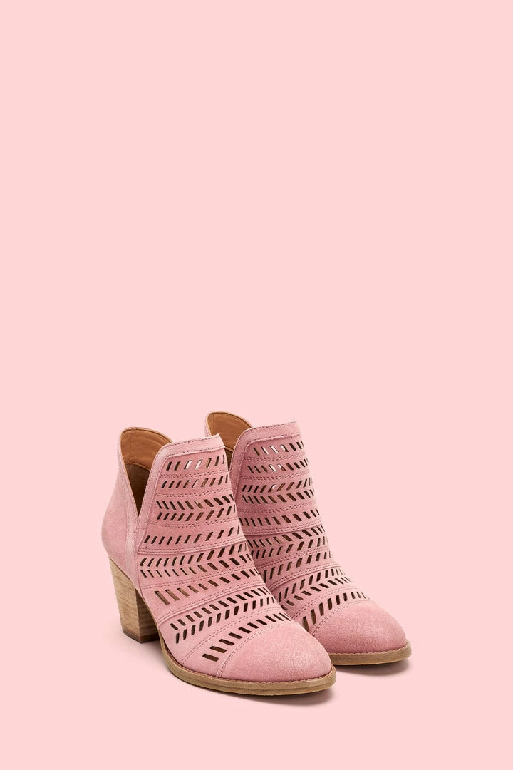 Handcrafted from ultra-soft suede, this handcrafted bootie features a feather-inspired, perforated design that boasts major artisanal attitude. Set on a leather-wrapped mid-heel, the recycled leather and rubber outsole deliver comfort that will last you from sunrise to sundown.
