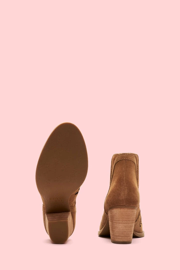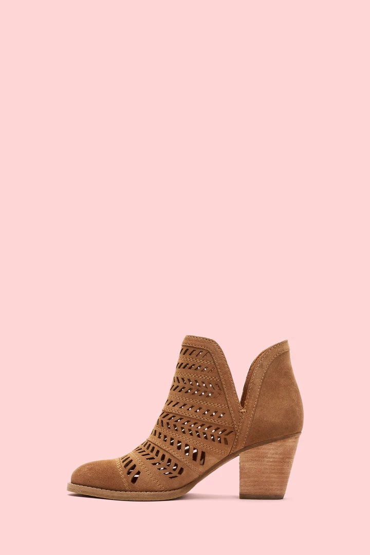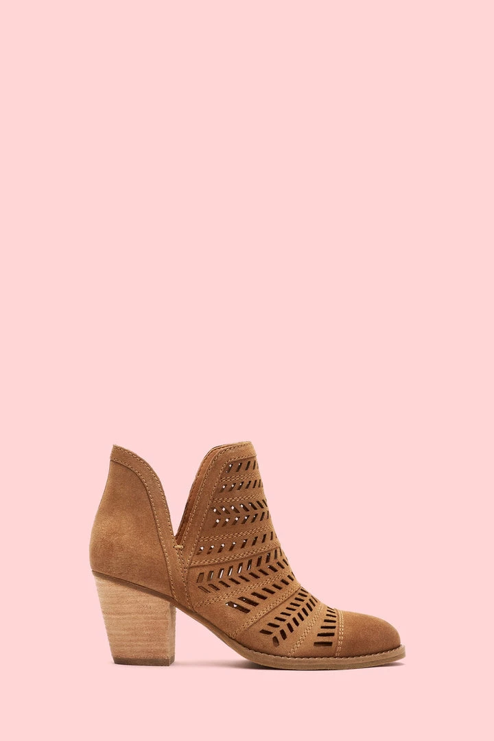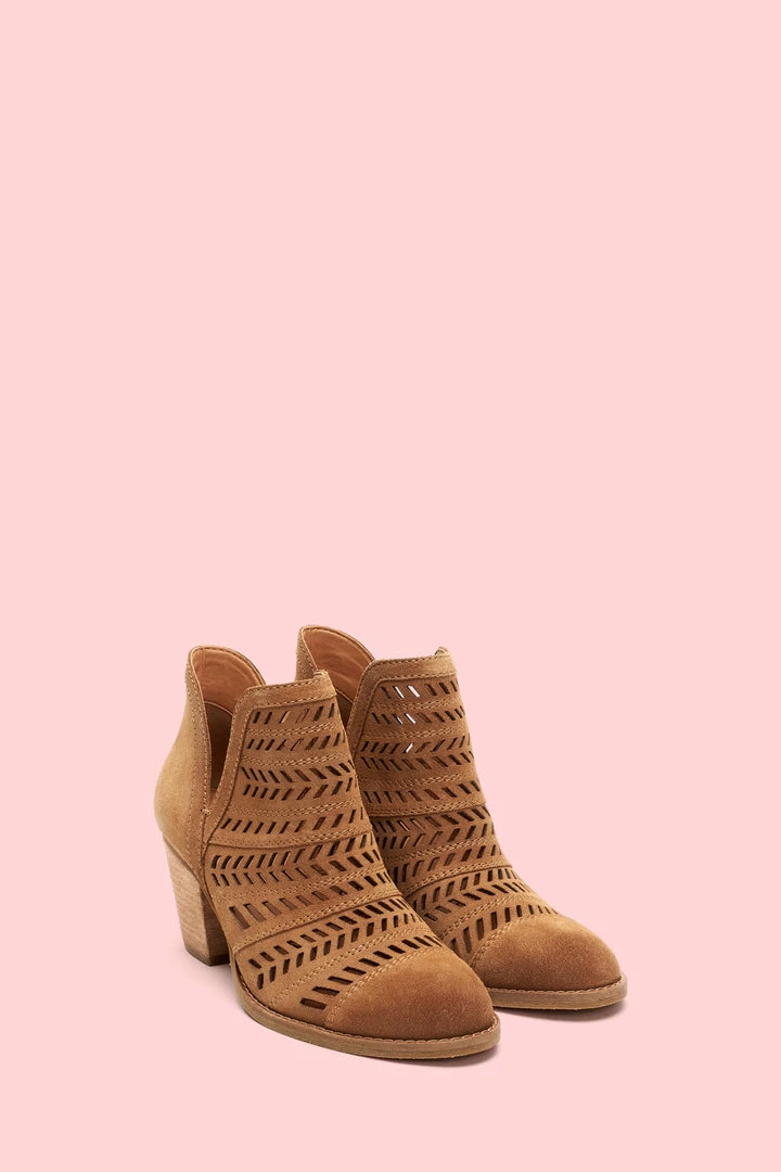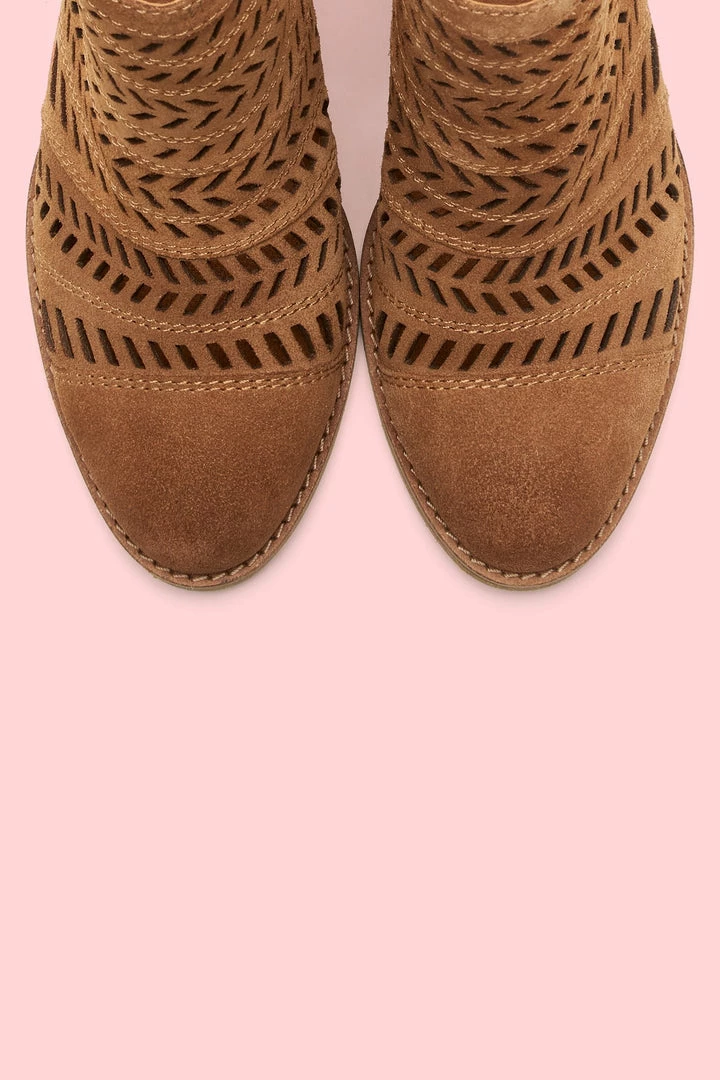 Handcrafted from ultra-soft suede, this handcrafted bootie features a feather-inspired, perforated design that boasts major artisanal attitude. Set on a leather-wrapped mid-heel, the recycled leather and rubber outsole deliver comfort that will last you from sunrise to sundown.