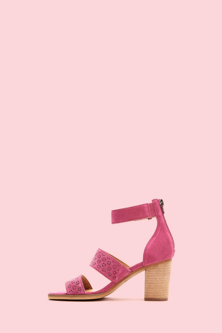 An artisanal take on the city sandal. Handcrafted from ultra-soft suede, this double strap ankle sandal stands out with its laser-cut perforation design. Set on a recycled leather welt with a stacked-wrapped heel, it features gore on the ankle strap for that perfect fit you want, as well as a convenient back zip. Cushioned footbeds deliver comfort that lasts from all day long.