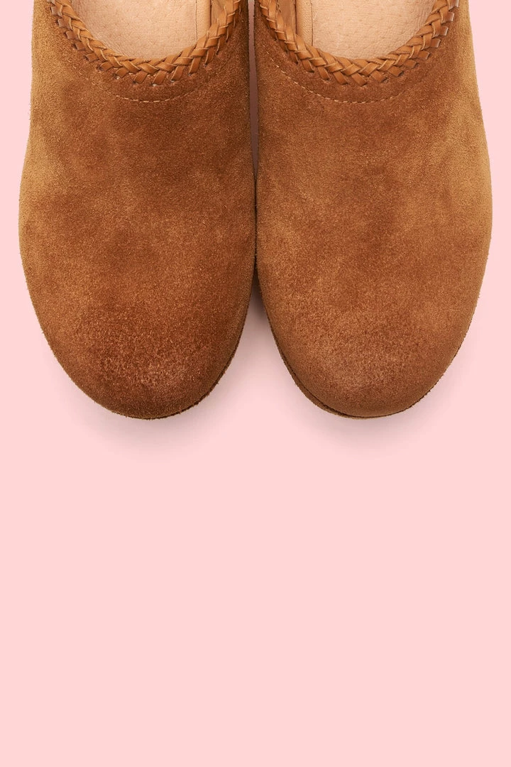Fashioned from suede and waxed leather, the braided leather trim adds an artisanal touch to this iconic style. Set on a recycled wood outsole that’s been hand stained, this style stands out with hand-tacking detail along the edge. Padded leather footbeds deliver instant comfort to take you from workday to weekend.