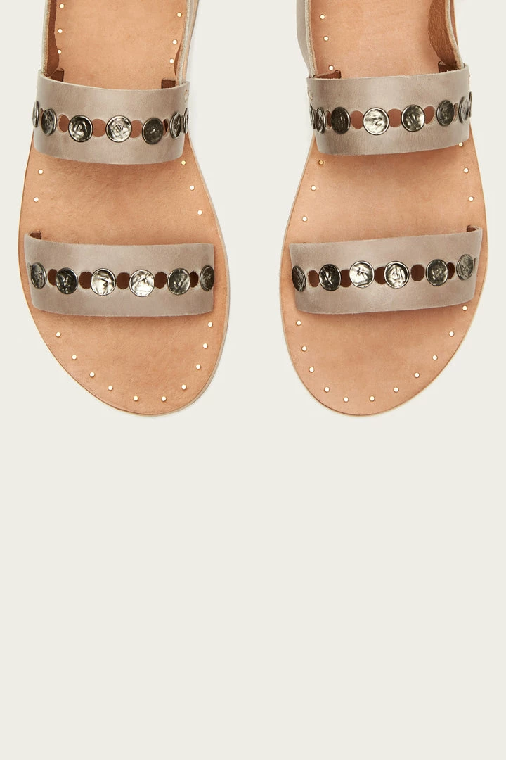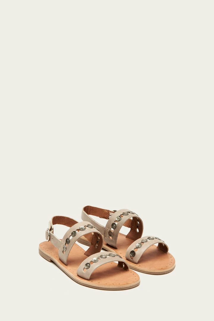 The ‘Ally’ slingback sandals have been embellished with hammered studs at both the toe and vamp straps which proves that sandals can be just as glamorous as heels. Made from waxed pull up leather that is only meant to improve with wear as the natural tanning process creates a color that will become richer with age. This open-toe flat pair has a buckle fastening at the slingback strap.