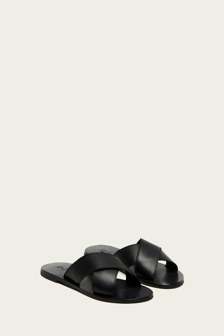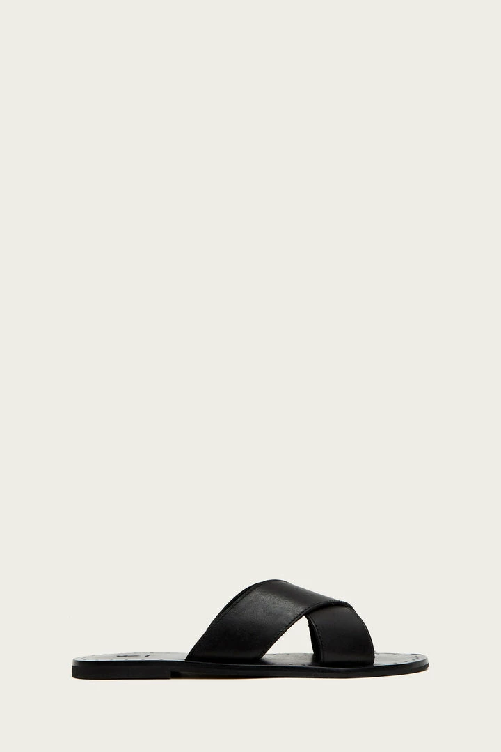 The ‘Ally’ sandals are a versatile summer essential that can easily be dressed up or down. This pair has two thick leather straps that cross at the foot. They are impeccably made from smooth vintage leather, they have a rubber sole to keep them from slipping when you walk. They’re finished with the brand’s signature stamp. – Italian leather