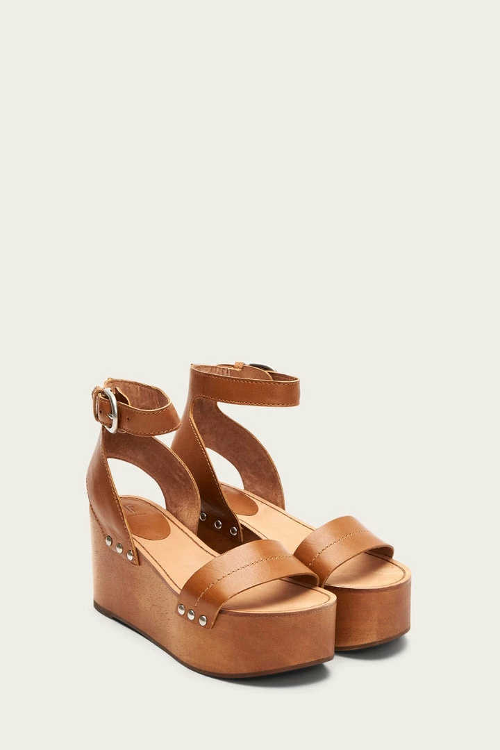 Beautifully constructed to stand out. This studded flatform sandal is handmade from vintage vegetable-tanned leather. Set on a hand-shaped, solid wood wedge, it is specially designed with a front pitch for flexibility and textured crepe rubber outsole for traction. The smooth, Vachetta leather lined footbeds offer deliver maximum comfort and support. The ankle strap features a leather buckle guard and hidden gore.– Leather lined