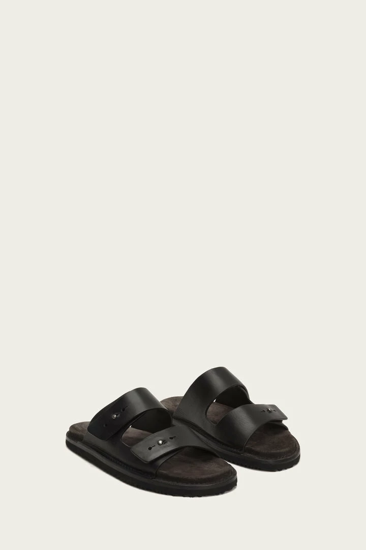 A sophisticated take on easy weekend style. Cut from vintage vegetable tanned Italian leather, this casual slide with adjustable double straps delivers on the perfect fit and supreme comfort courtesy of a sponge rubber sole. – Italian leather