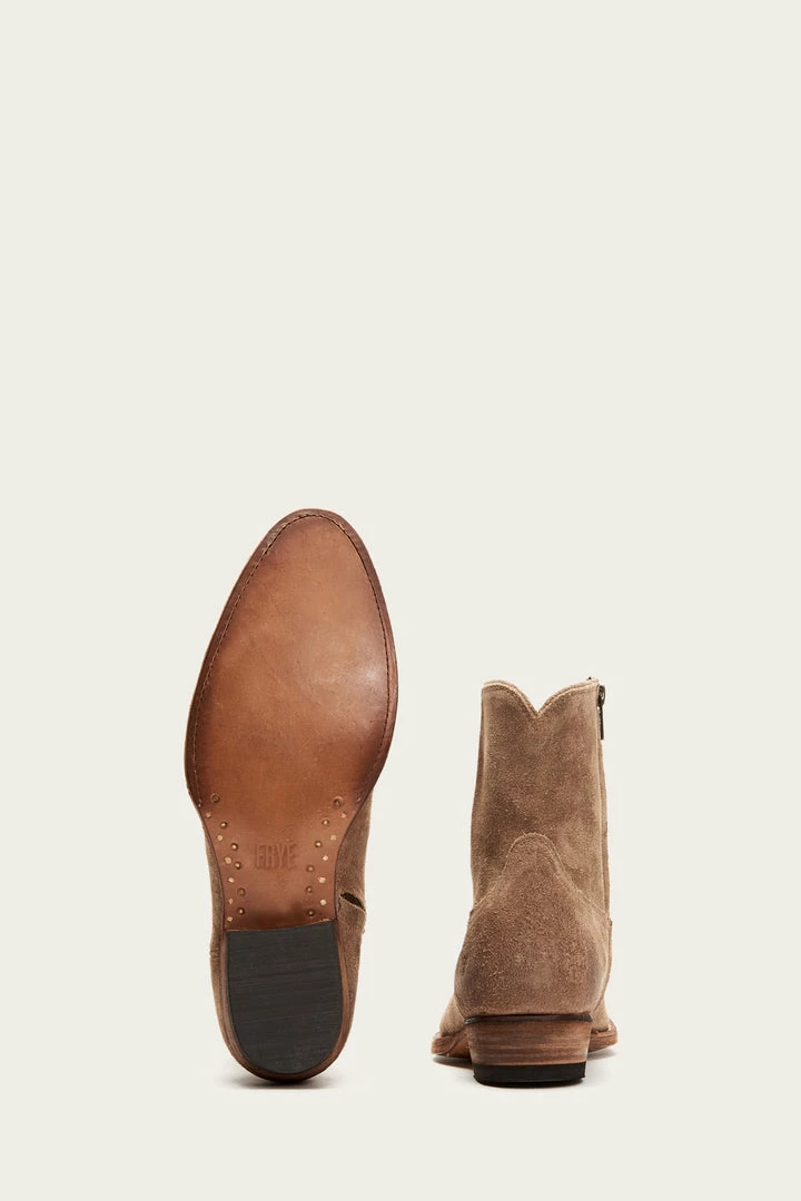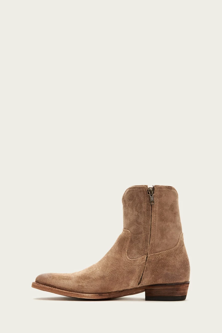 These boots draw on original Western styling with a modern reinterpretation. The oiled suede encourages a rakish patina to develop over time as you will be wearing this pair for years to come. Design features include stitch detailing at toe, scalloped top line and classic western heel shape with Goodyear welting. Side zipper closure.