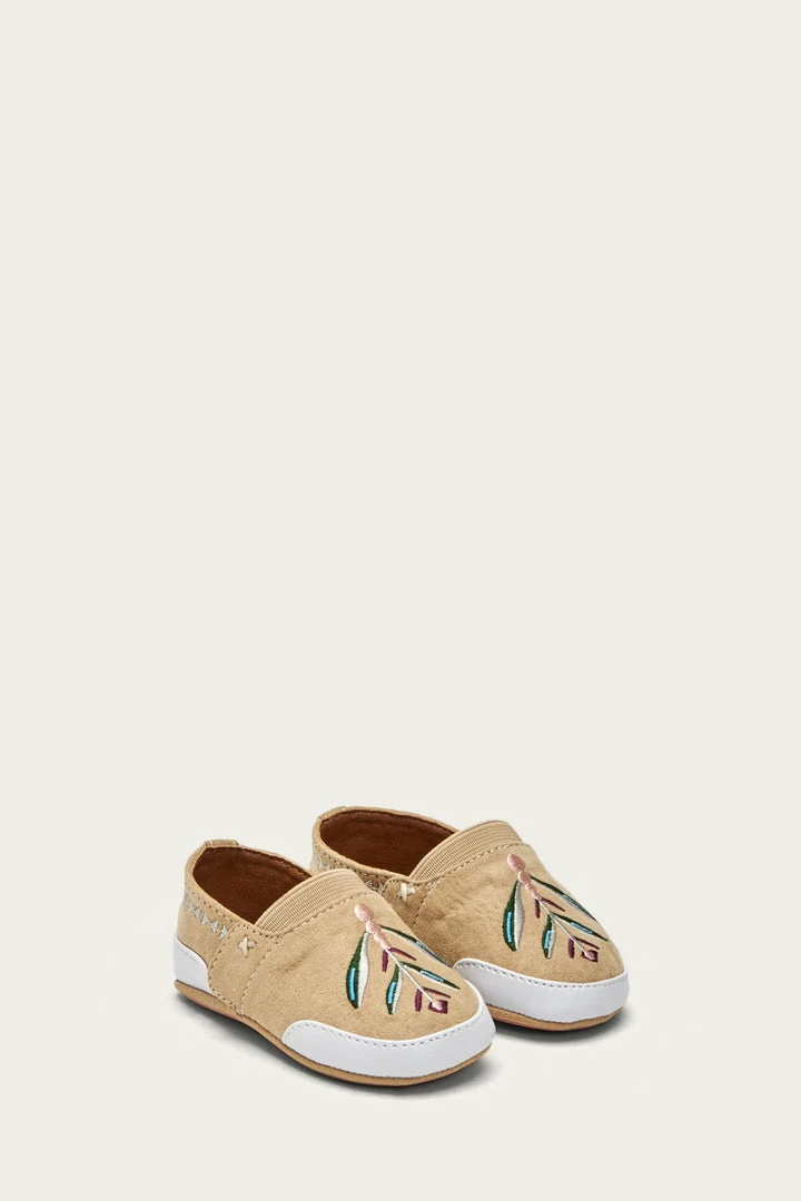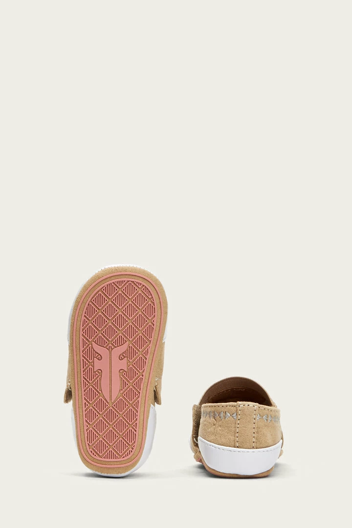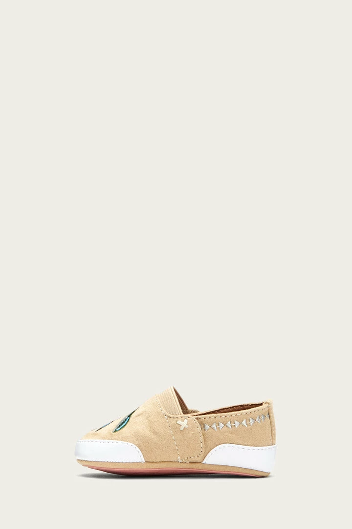 The baby ‘Mel’ are designed to look (and feel!) like a classic slip-on sneaker, making for a perfect casual-chic style. Mixed pastel and vivid tones enliven the Western-inspired floral embroidery detailing. Bumpers at the toe and back heel plus Frye logo printed rubber outsoles lends security to your first-time walker. Easy to put on and stay on!