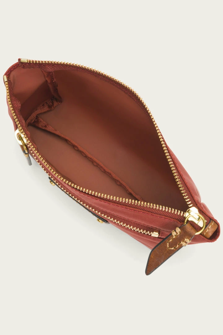 Frye’s accessories are both stylish and practical – case in point, this Ivy cosmetic pouch. Made from durable light water-repellent nylon, it’s spacious enough for your on-the-go daily makeup routine. Designed with a topline zipper closure, convenient zippered front pocket and finished with a textured-leather trim at the brand’s iconic patch and hand-stitched FF detailing at the elongated zipper pulls.