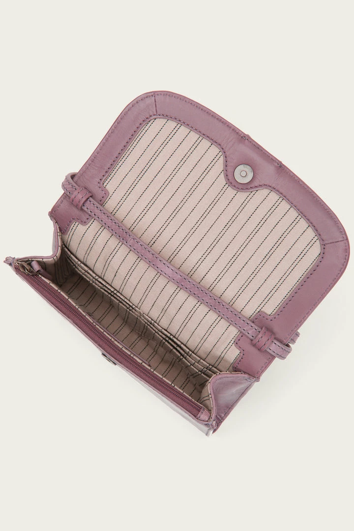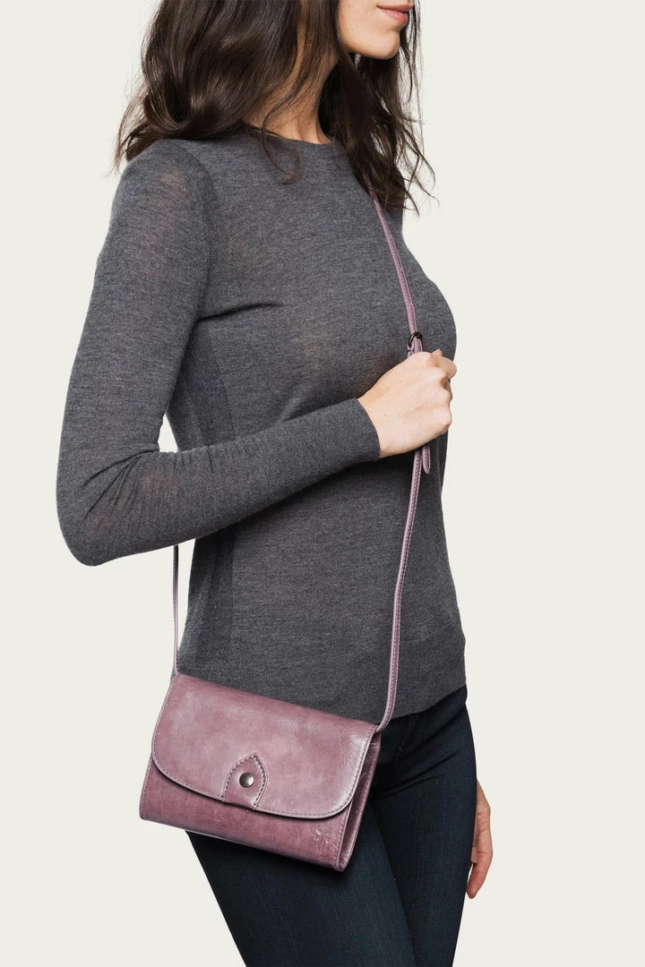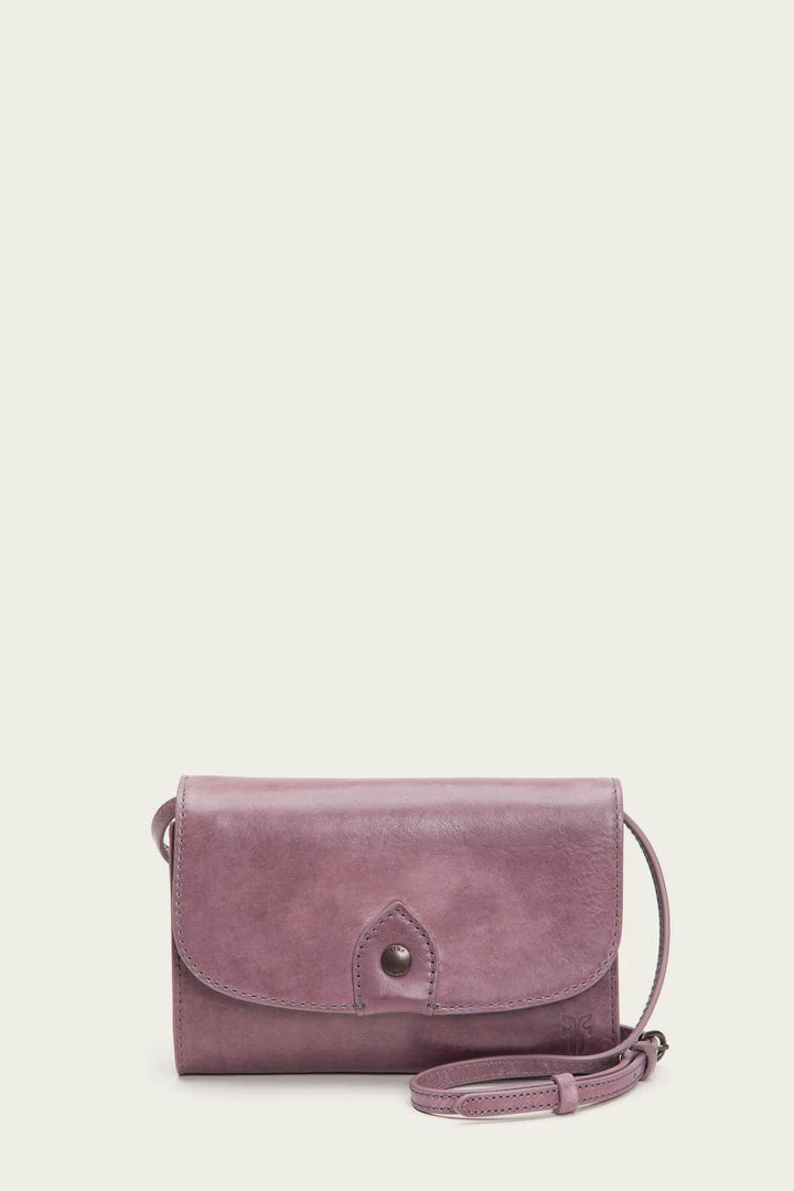 The brand’s penchant for ’70s detailing remains on point with the Melissa wallet crossbody style. Made from an antiqued pull up leather and minimally detailed with a designer button detail at the flap front that makes for a subtle update to Western-inspired look.