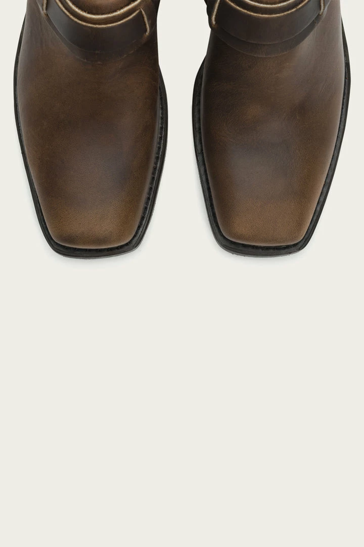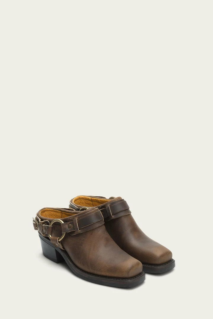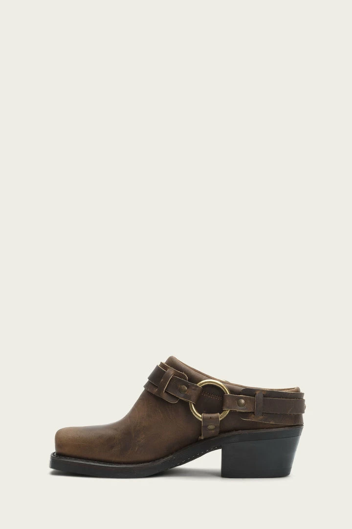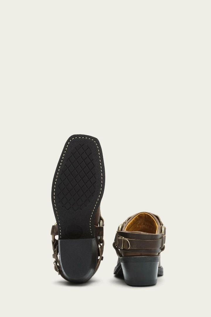 A spin on our classic Harness biker boot, this mule shows a softer side. No details spared, the belt detailing adds style to our signature oiled leather and snub toe. Complete with an oil-resistant neoprene sole, slip on for a midnight drive-in movie or trip to the local dive. Made in USA and sourced from domestic and imported products. -Made in the USA. Sourced from domestic and imported products.