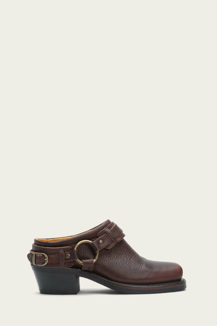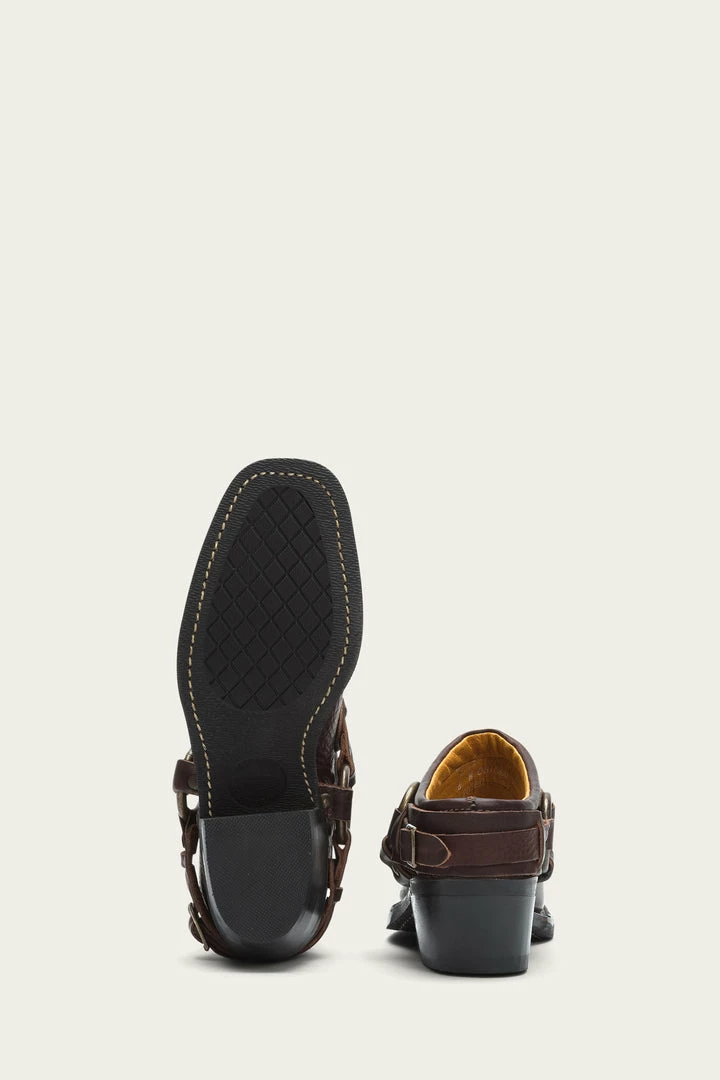 A spin on our classic Harness biker boot, this mule shows a softer side. No details spared, the belt detailing adds style to our signature oiled leather and snub toe. Complete with an oil-resistant neoprene sole, slip on for a midnight drive-in movie or trip to the local dive. Made in USA and sourced from domestic and imported products. -Made in the USA. Sourced from domestic and imported products.