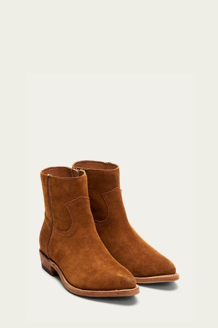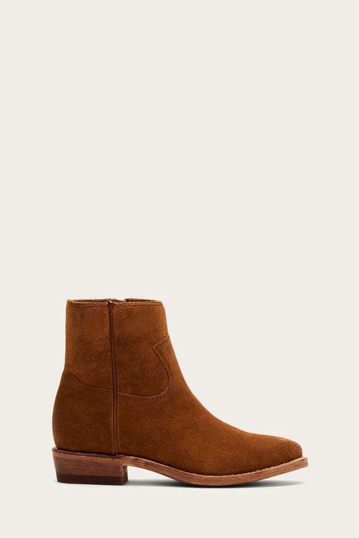 A true classic western styled bootie, featuring Goodyear-welted construction with leather outsoles are crafted from antiqued pull up leather with leather linings. The straight cut topline and inside zipper makes for a modern western look.