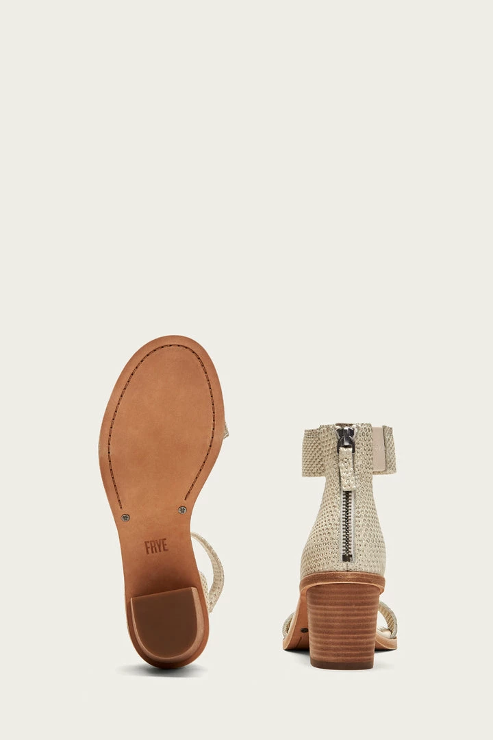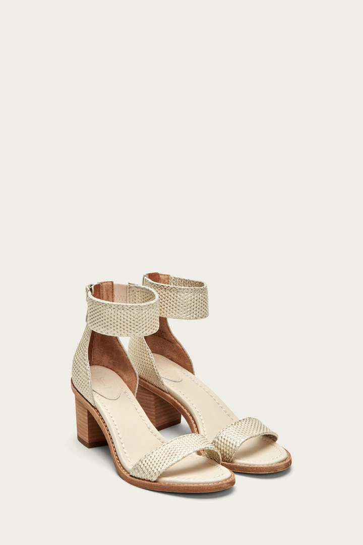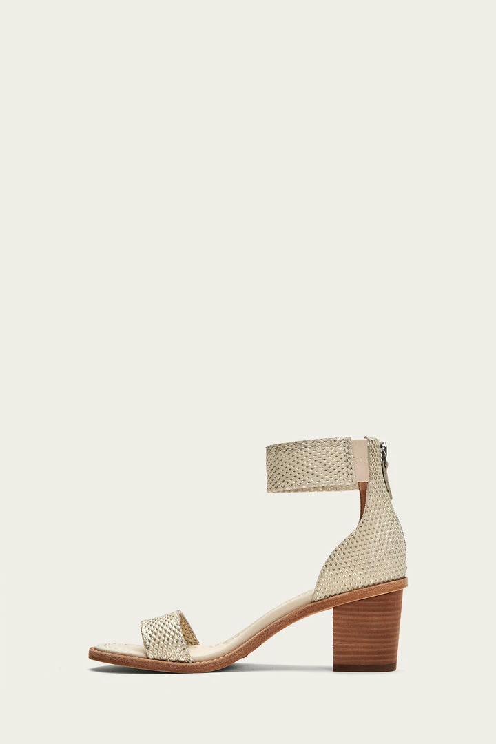 The definition of warm-weather chic. Handcrafted from a buffed metallic Nubuck leather, our best-selling ankle-cuff sandal with beautifully stitched edging features the perfect heel that’s designed to stand out.