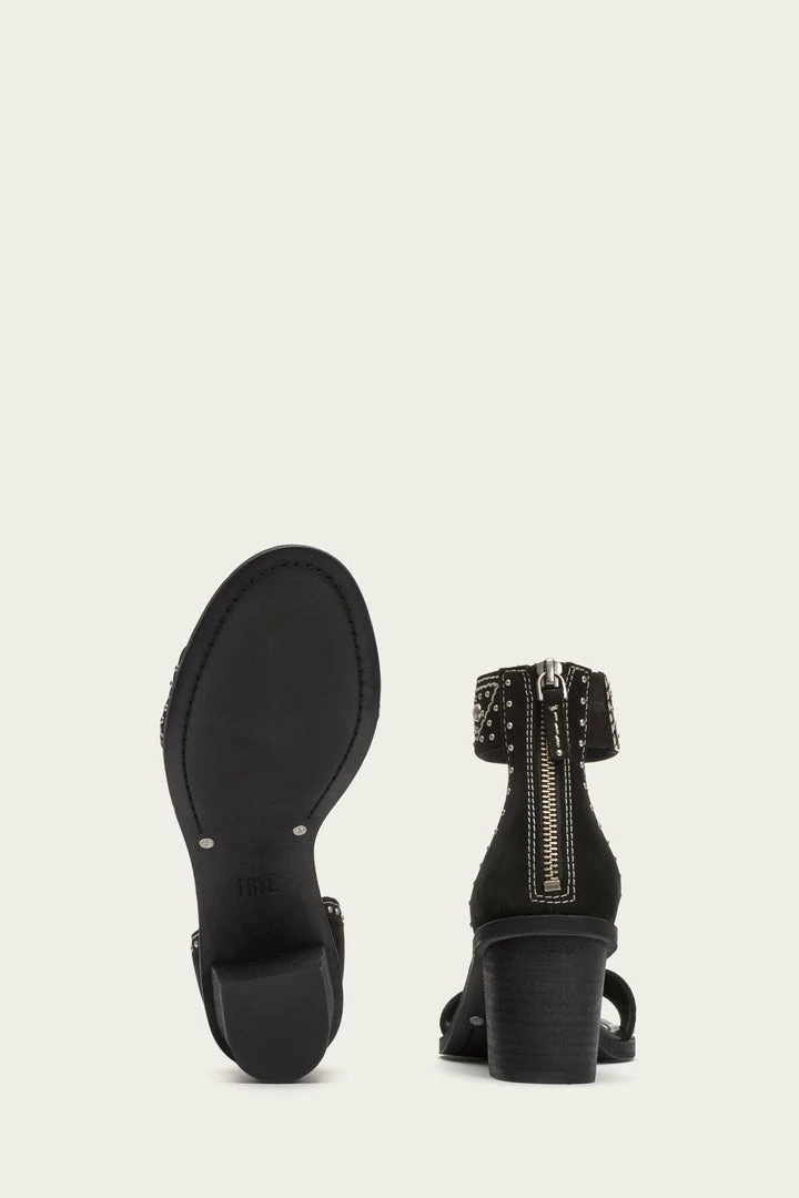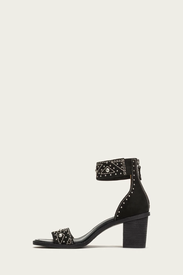 Our best-selling ankle-cuff sandal gets an art deco update. Fashioned from oiled nubuck leather that’s double dyed, this casual-chic shoe is reimagined with decorative studding designed to add fashionable flair. – Leather lined