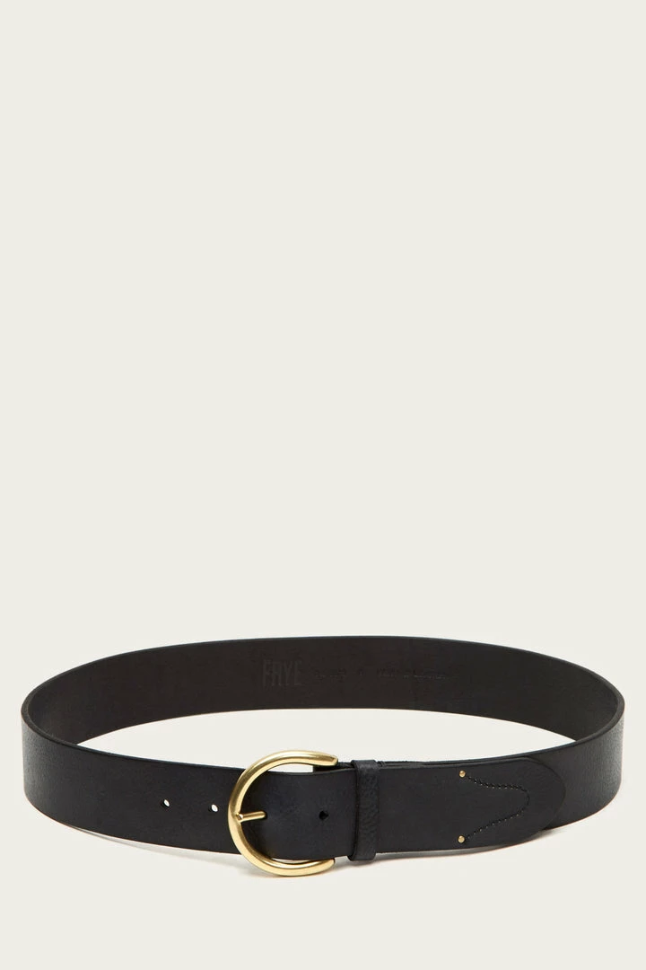 This 40mm wide belt is a must-have for fans of the iconic brand. This style is crafted from smooth leather and embellished with a signature brass buckle that has a slightly burnished finish. Stitch detail at tip.