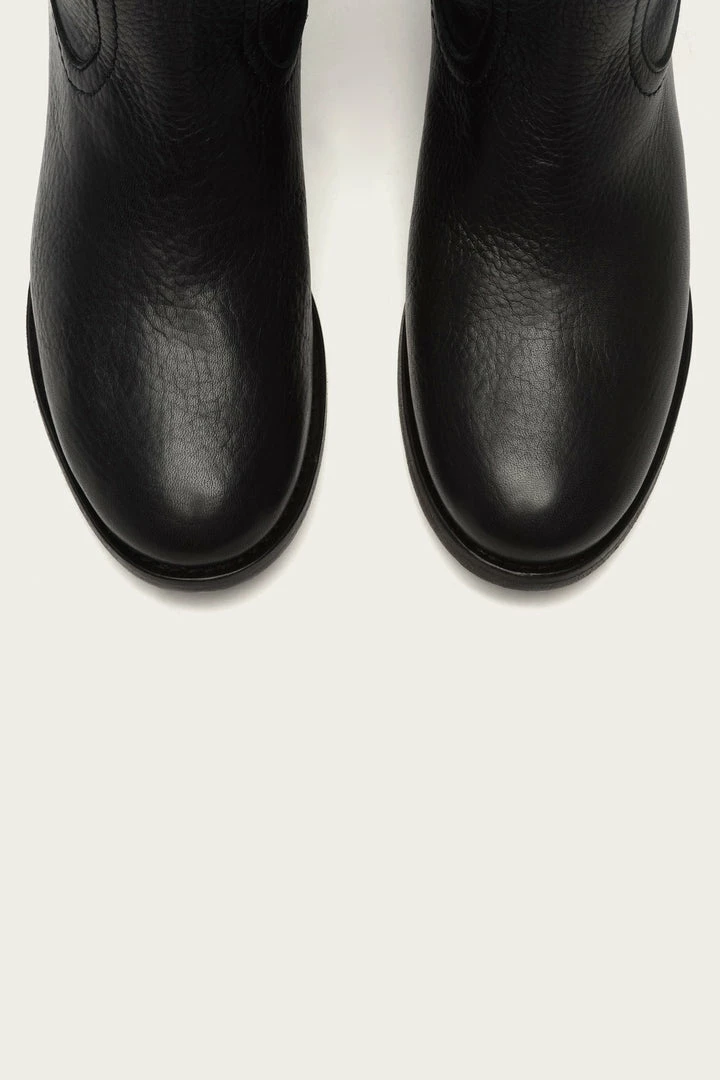 A contemporary take on our signature Campus boot, the Cara Roper Tall in soft pebbled full grain leather is the new western cool—wear it at the knee or softly scrunched down. The curved topline is a nod to classic country. – Unlined