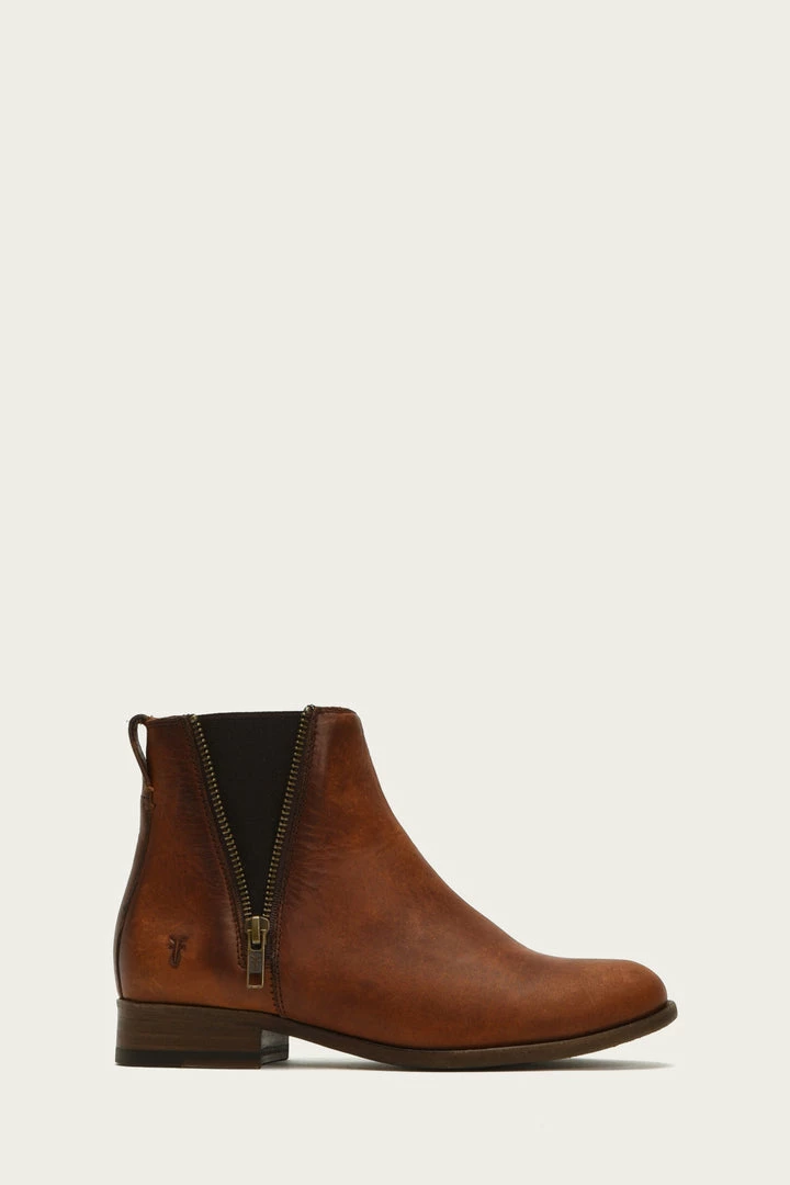 The Carly Chelsea booties are a contemporary take on a classic. Made from supple soft leather, this pair is characterized by the brand’s signature edgy zipper closures and asymmetric topline.