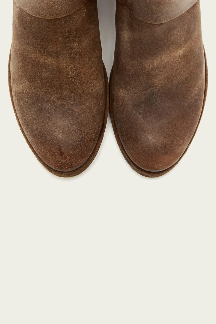 The tall Carson boots are flawlessly made from a waxed vintage suede. The snap button heritage harness strap at inside zipper closure is a testament to Frye’s attention to function without forsaking iconic design. – Leather lined