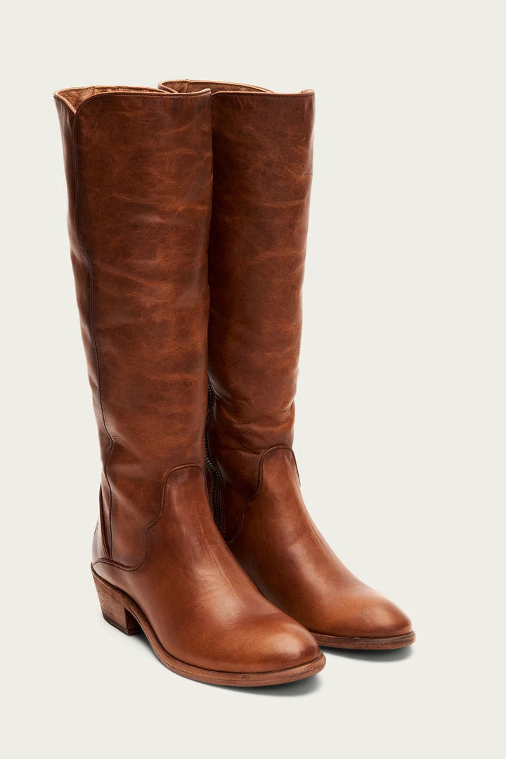 The Carson are one of the most highly anticipated tall boot styles this season as they’re made from antiqued pull up leather and detailed with Western-style piping. They’re propped up on a low heel with an inside zipper closure. – Leather lined