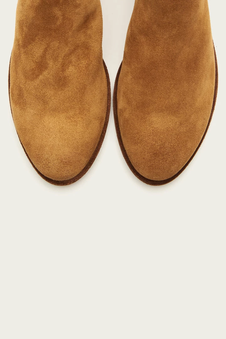 Set on a manageable heel, this Western bootie is crafted from oiled suede and has signature piping. Because they are low-cut around the ankle and exceptionally soft, they can be worn with or without socks. – Leather lined