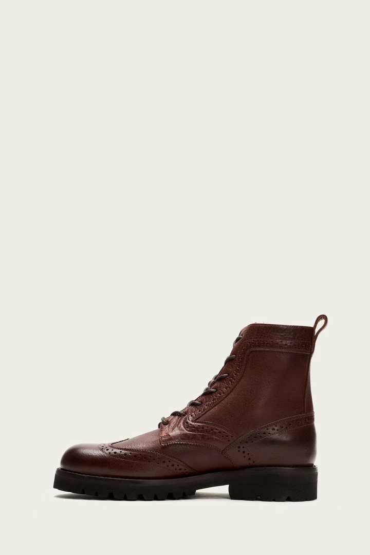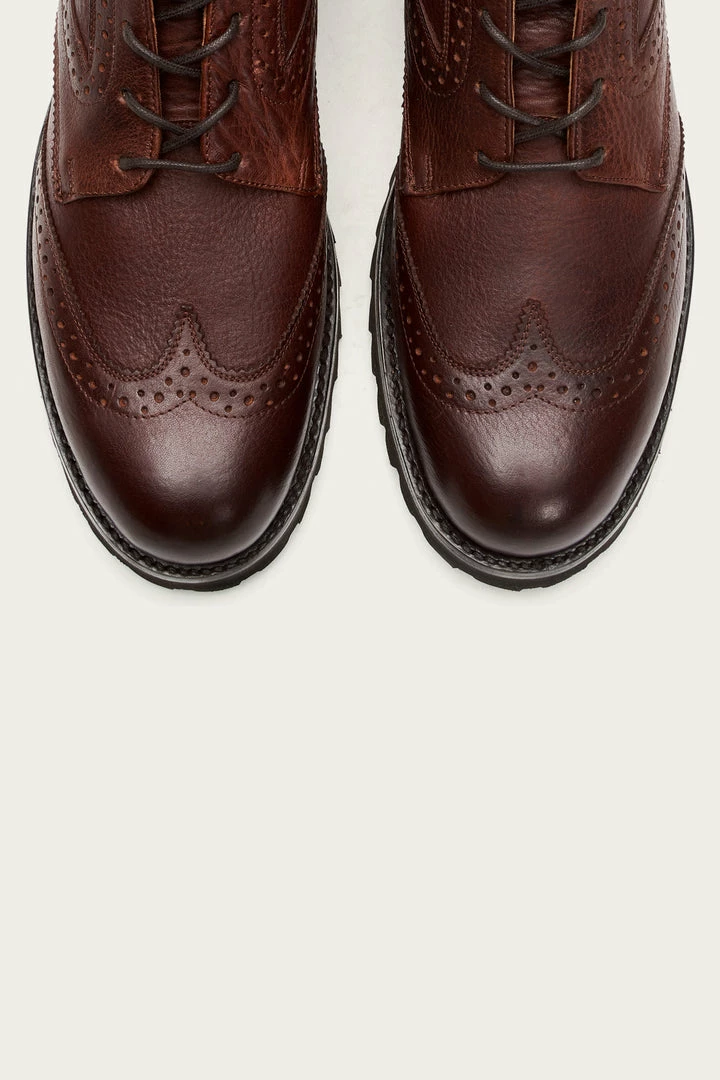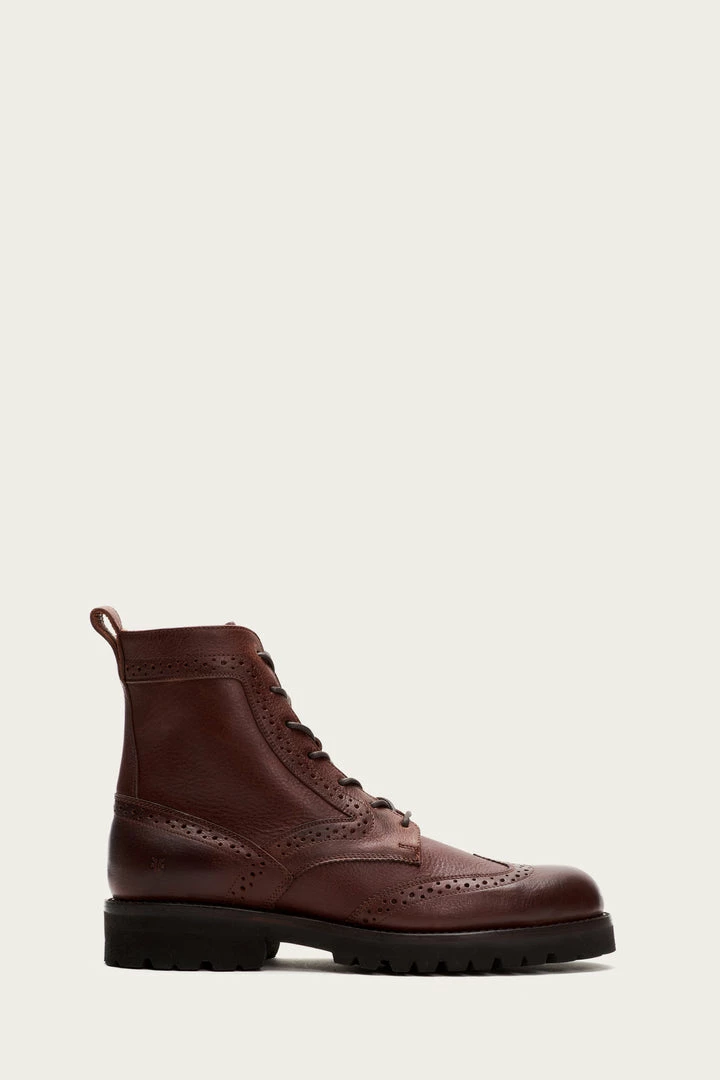 Designed to wear in for the perfect fit and look, this pebbled vegetable re-tanned and burnished for an aged patina leather pair of wingtip boots will make a timeless investment. They are set on lug soles that are built to last, which is part of the original sturdy craftsmanship that put the brand on the map back in 1863.