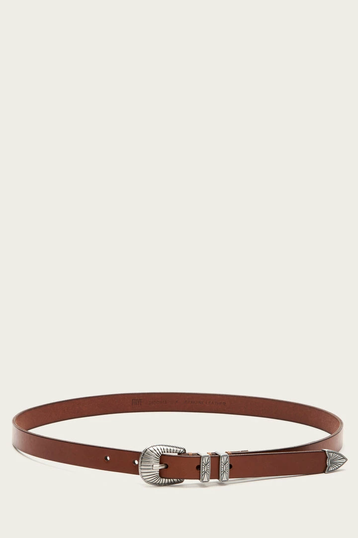 Crafted from vegetable-tanned leather, this slim belt is detailed with Western-inspired hardware at the buckle, double metal keepers and finished edge. Wear yours on the hips for a true rodeo ride.