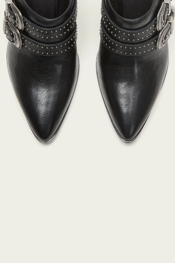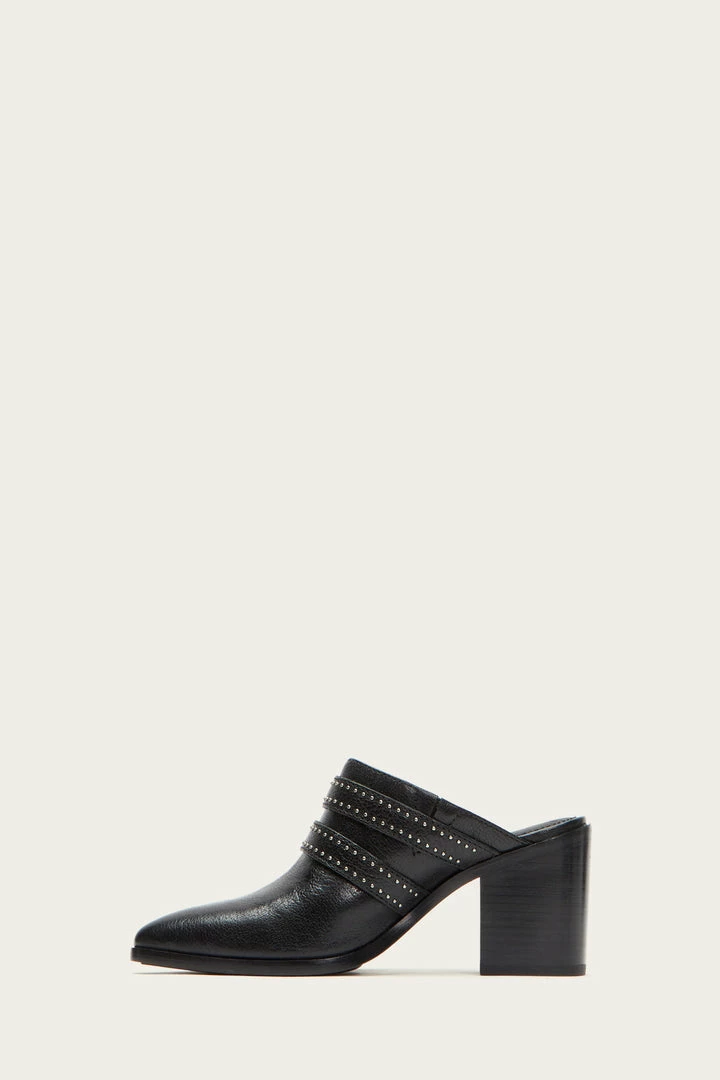 The ‘Flynn’ mules are designed in a chunky block-heeled, pointed shape that’s set to dominate for the season. Invest in a pair now and you’ll be two steps ahead of the style game. They’re made from tumbled Buffalo leather and detailed with two Western-inspired buckles finishing the look at the hand-applied deco studded straps. – Italian leather