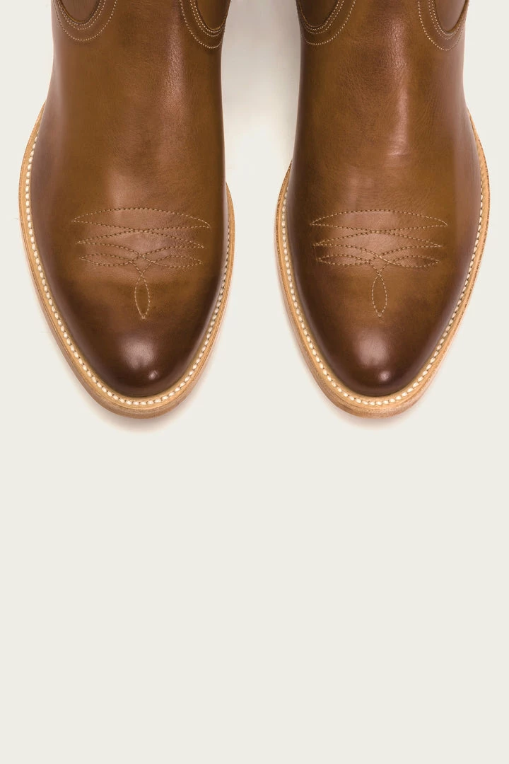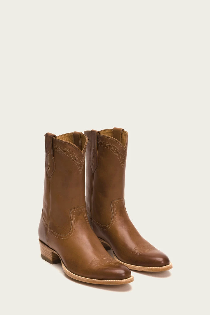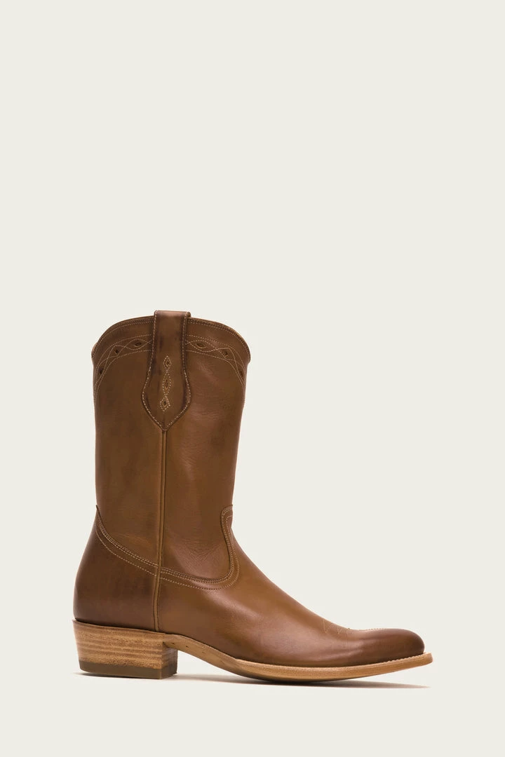 The statement is in the simplicity. Smooth polished Italian leather gives this mid-shaft pull on a handsome finish. Easy round-toe styling and top-line stitching make this a boot you’ll turn to again and again. – Italian leather