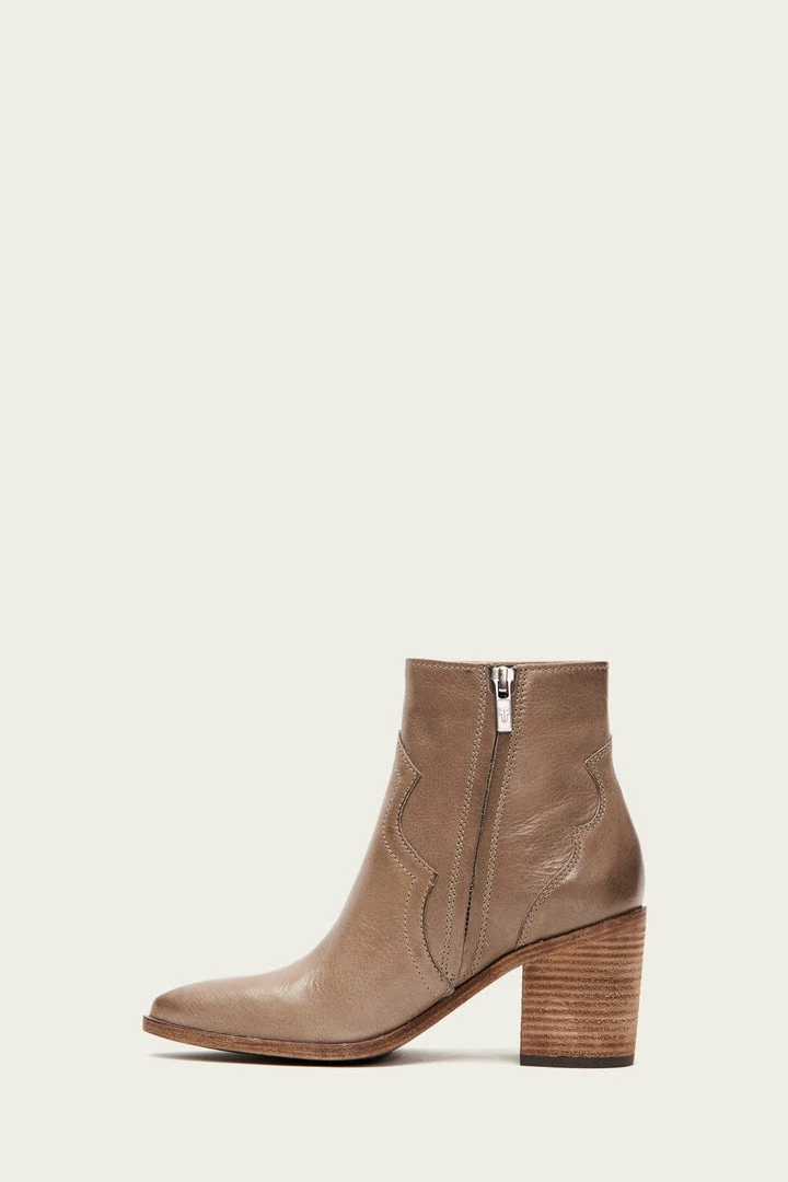 The Flynn are a classic booties style that every woman should own. Crafted from polished full grain Italian leather with featured details including an edged wellington, pointed toe, inside zipper closure and chunky block heel.
