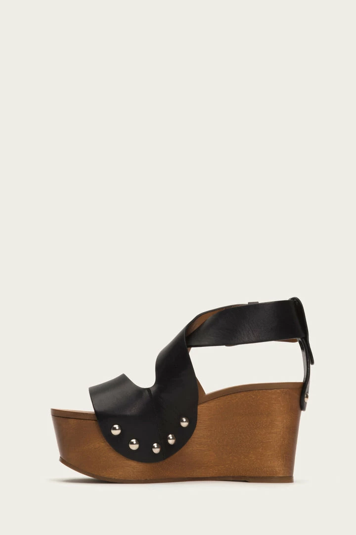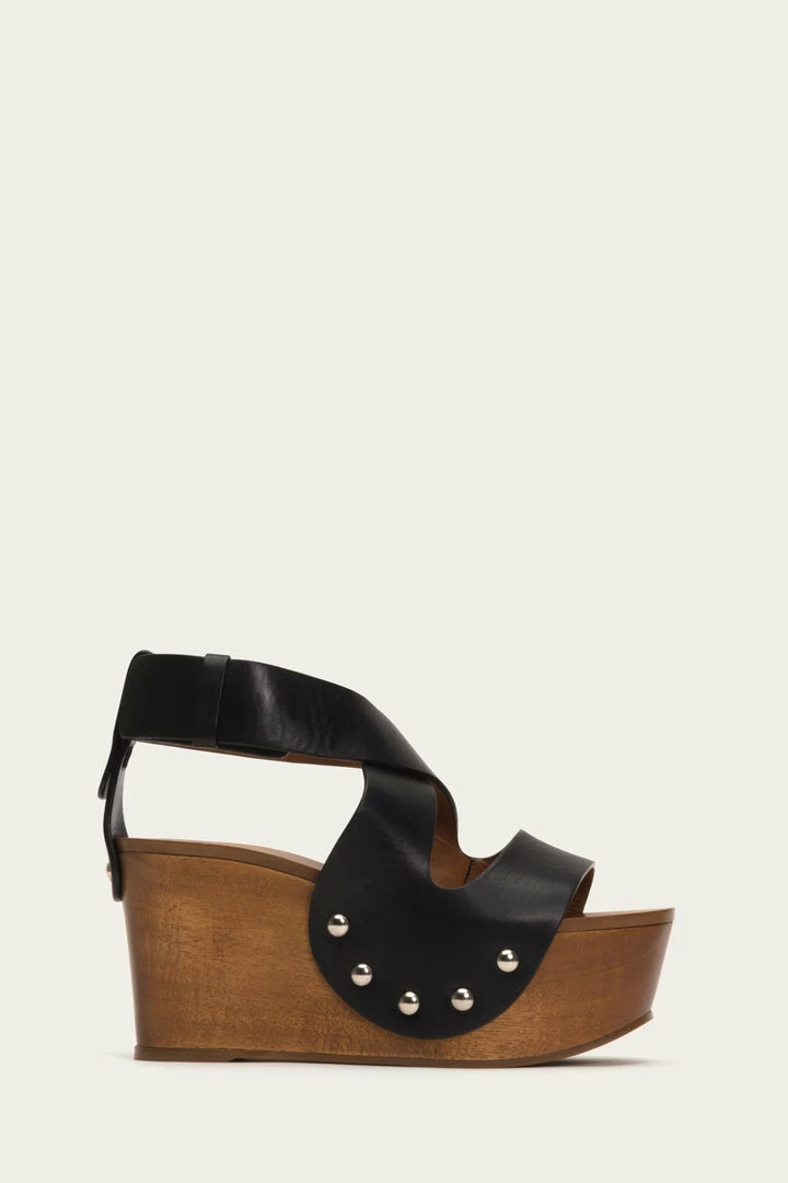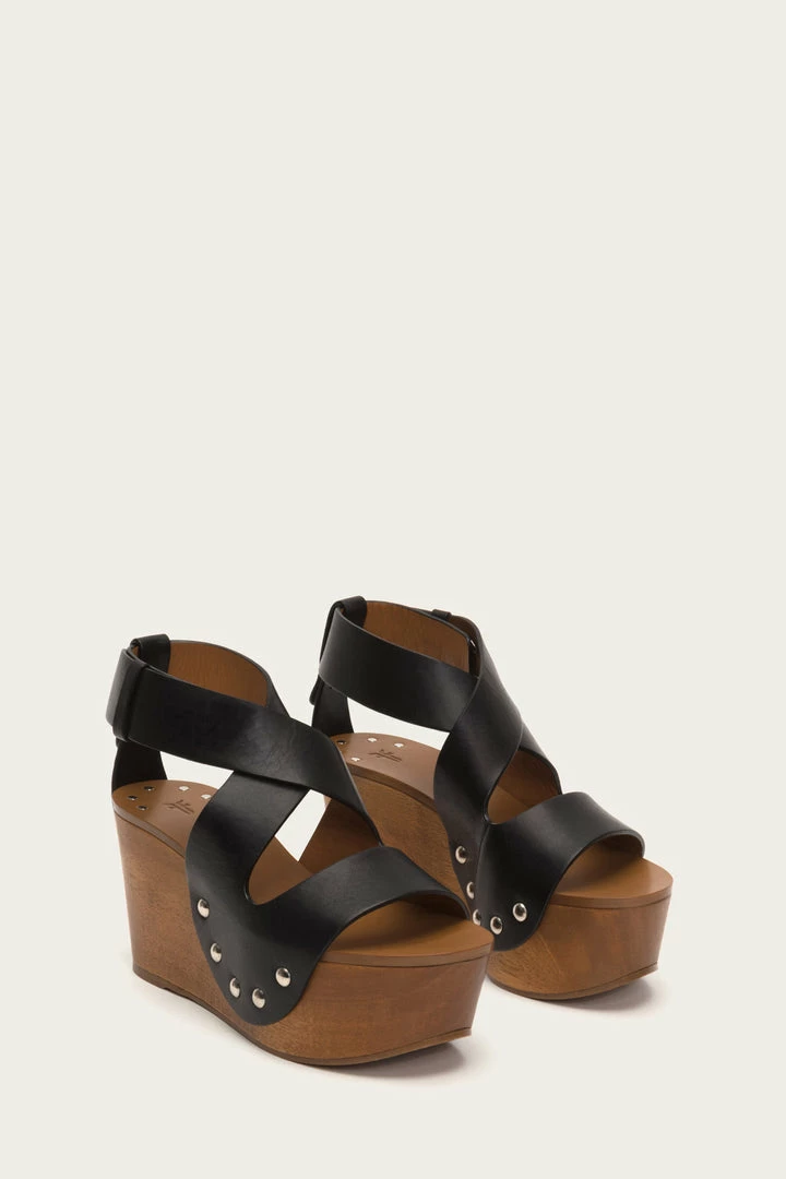 A new level of boho chic. The statement-making wooden platform wedge on this seventies-inspired sandal eases arches while shiny stud hardware secures the vegetable tanned full grain Italian leather upper to the outsole. The thick crisscross ankle strap is discreetly secured with a hidden post closure. Part of our Made in Italy Collection. – Made in Italy