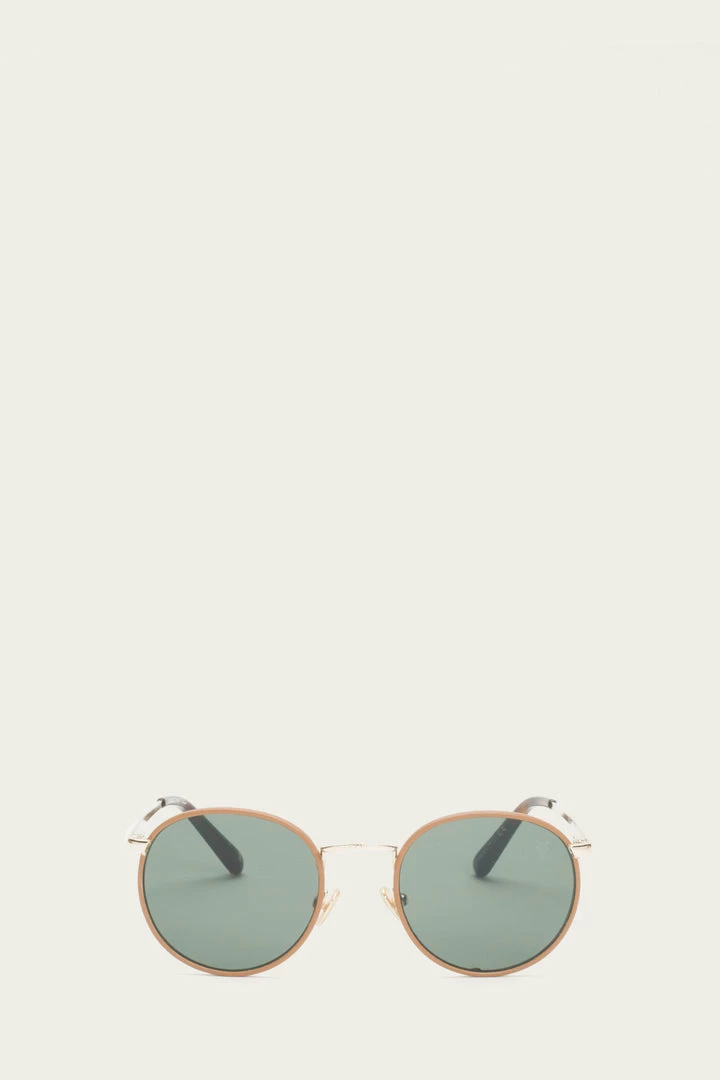 Crafted from premium stainless steel, this modern style boasts a round frame that is accented by leather trim detailing. The optical-grade lenses provide 100% UVA and UVB protection, for wherever your day may take you. Designed to last with sturdy stainless steel hinges to keep the frame’s shape. All sunglasses feature logo stamp details and come with our signature leather case.