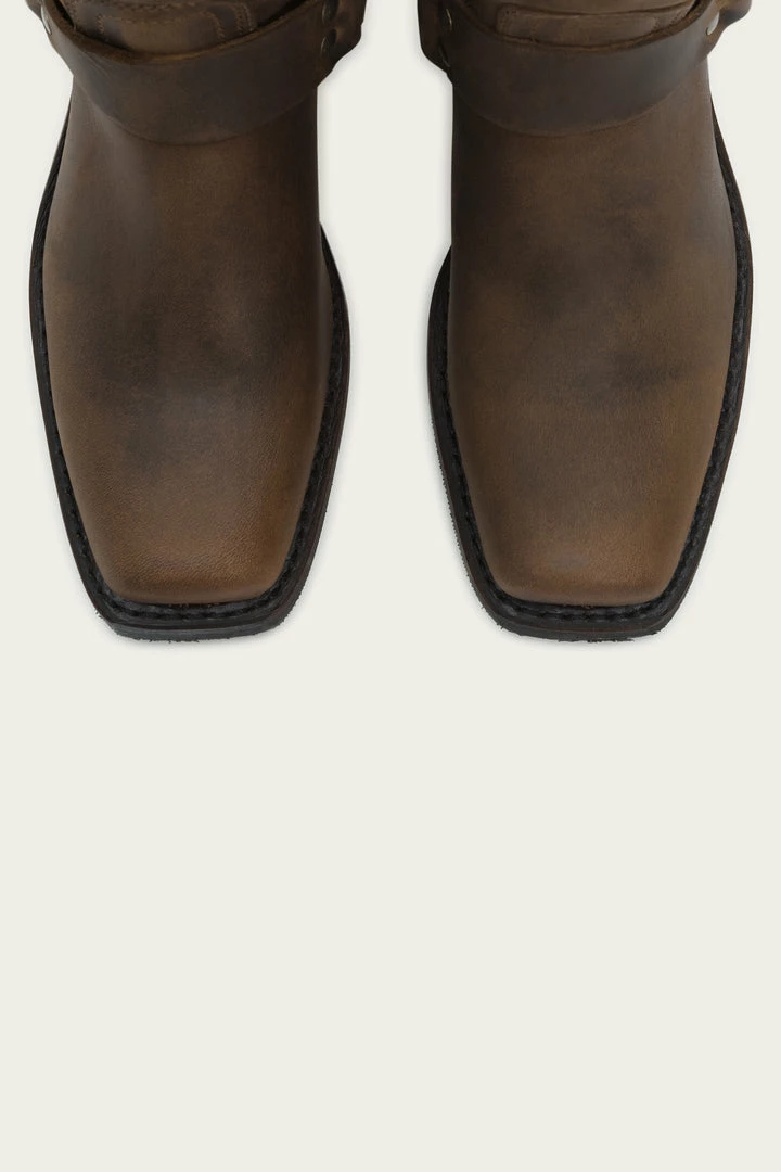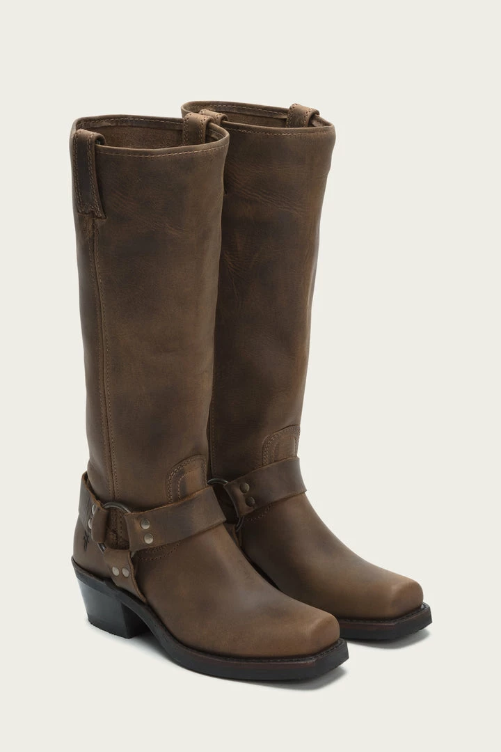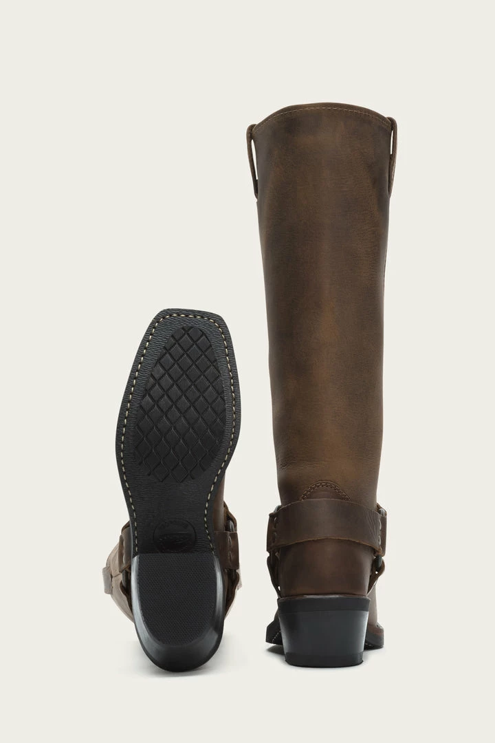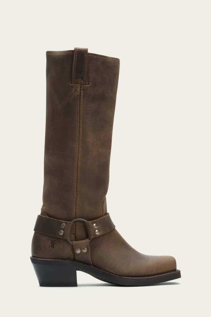 Tall and proud, nothing says American Craftsmanship like The Harness 15R. Inspired by the cavalry, this is American craftsmanship at its best. Not for the faint of heart, this knee-high boot made of oiled leather with high and low tones is uncompromising and gets even better with age. Unlined with rugged rubber bottoms, it needs a certain type to make this boot her own. Made in USA and sourced from domestic and imported products.