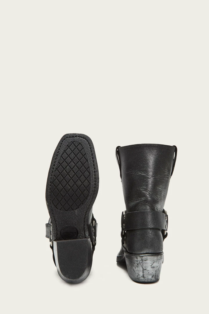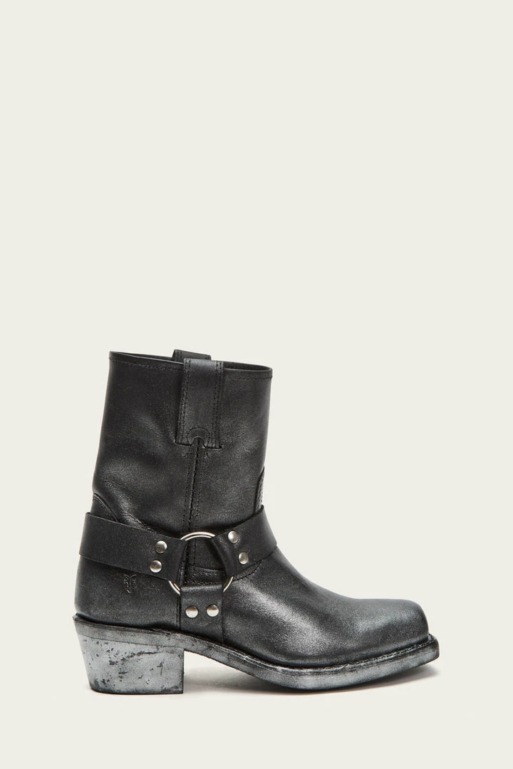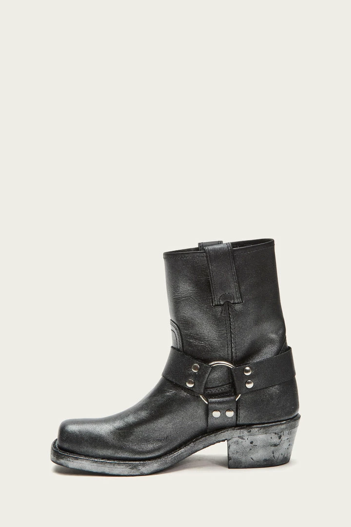 Even with its low rider height, nothing says American craftsmanship like the Frye Harness Boot. Inspired by the American cavalry, this is American craftsmanship at its best. Not for the faint of heart, this boot is uncompromising and gets better with age. Unlined with rugged rubber bottoms, it needs a certain type to make this boot her own. Metallic paint is hand applied to finished pairs for a unique twist on our classics. The paint will wear down over time making each pair one-of-a-kind. Part of Our Made in USA Collection.