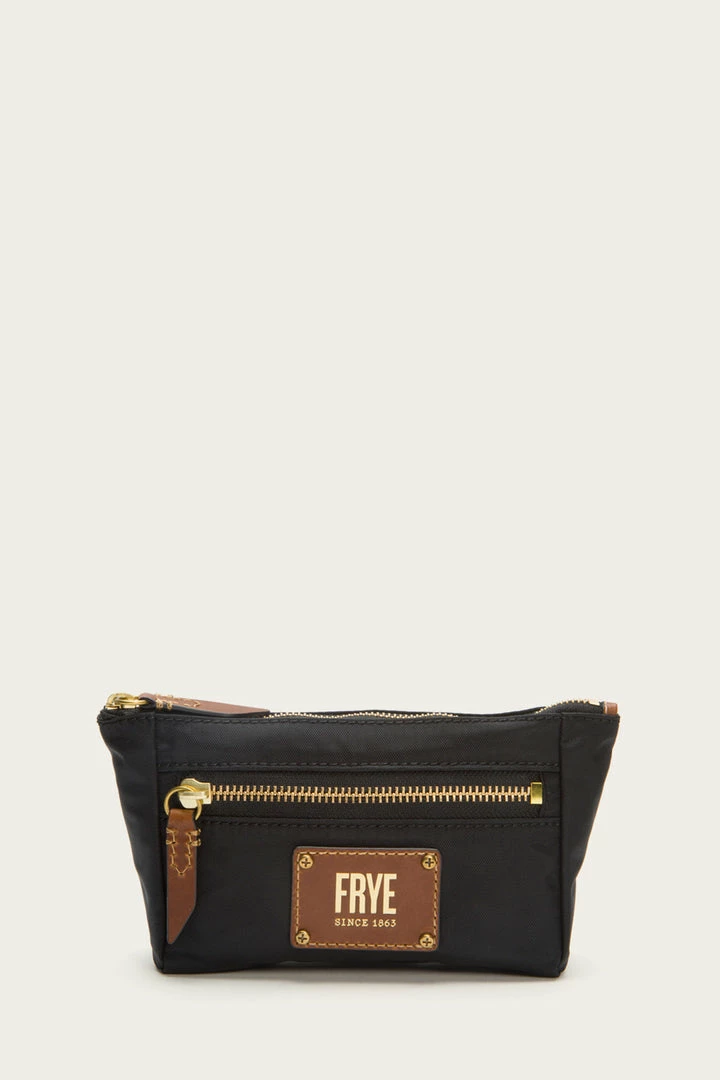 Frye’s accessories are both stylish and practical – case in point, this Ivy cosmetic pouch. Made from durable light water-repellent nylon, it’s spacious enough for your on-the-go daily makeup routine. Designed with a topline zipper closure, convenient zippered front pocket and finished with a textured-leather trim at the brand’s iconic patch and hand-stitched FF detailing at the elongated zipper pulls.