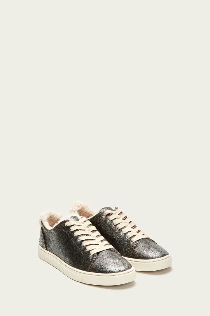 These lace-up sneakers are crafted from brush off metallic leather that instantly captures a cool minimalist mood. The pair has a molded footbed and rubber cupsoles that are designed to ensure all day comfort. As they are trimmed with shearing, we suggest reaching for them as soon as the temperature drops. – Leather lined