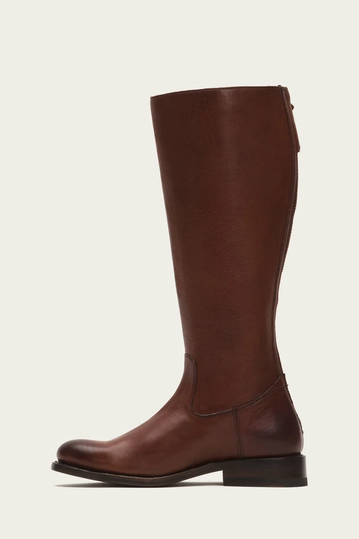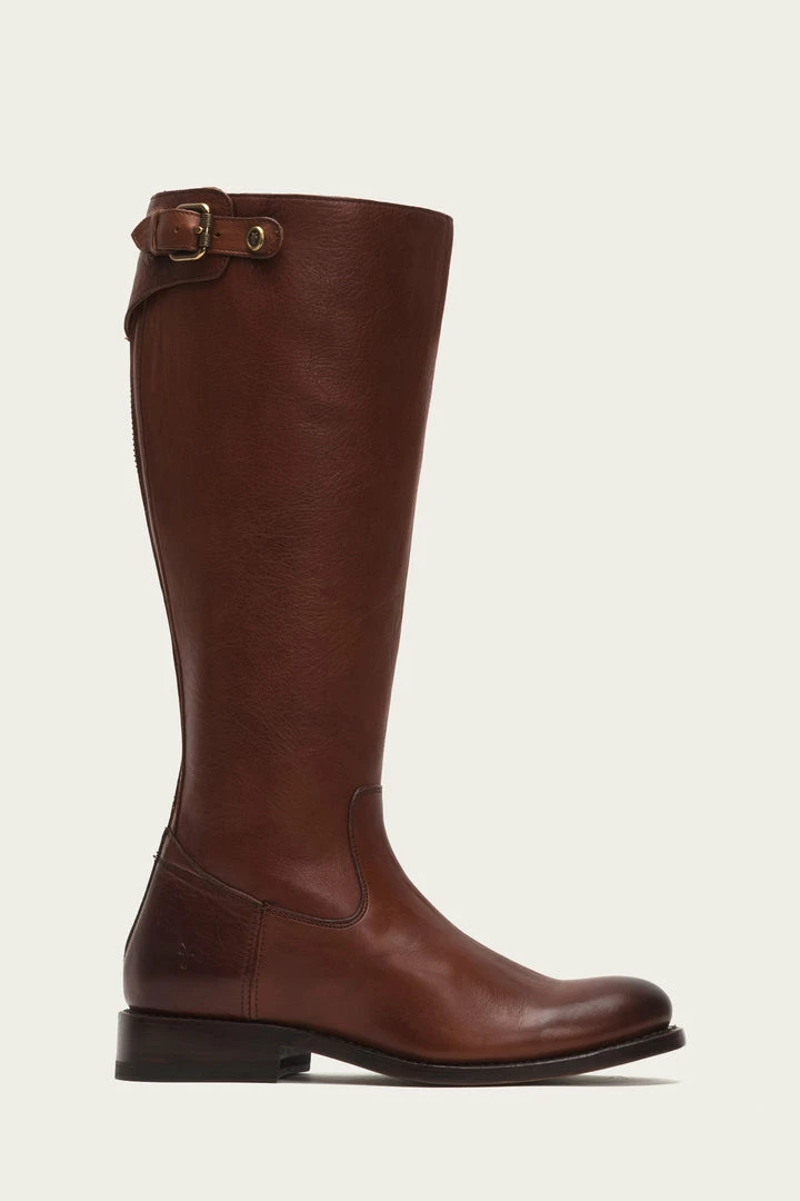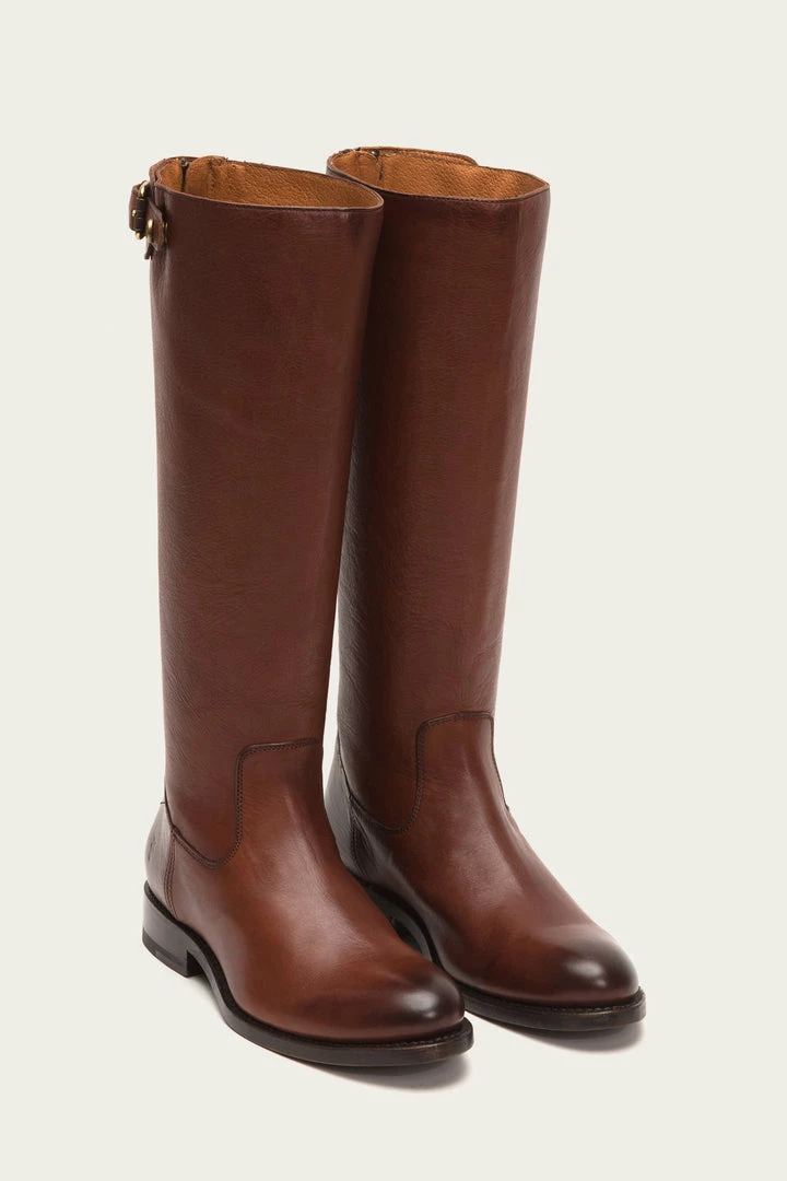 Hand-finished in Italy and made from a tumbled soft full grain leather, the Jayden boots are sophisticated and sleek. This round-toe pair hits the knee and has a low block heel with a full length back zipper closure. The ring buckle detail gives nod to Frye heritage however, it snaps on an off for stylish versatility. Goodyear welted construction. – Italian leather