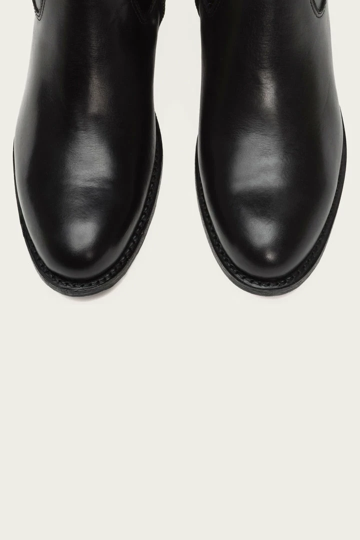 A modern classic, this riding boot boasts a streamlined silhouette and refined point-of-view. Made of smooth vintage leather that’s been hand-burnished for those rich high and low tones you love. With its side pull tab and signature button, this boot is regal enough to wear with your entire wardrobe. – Leather lined