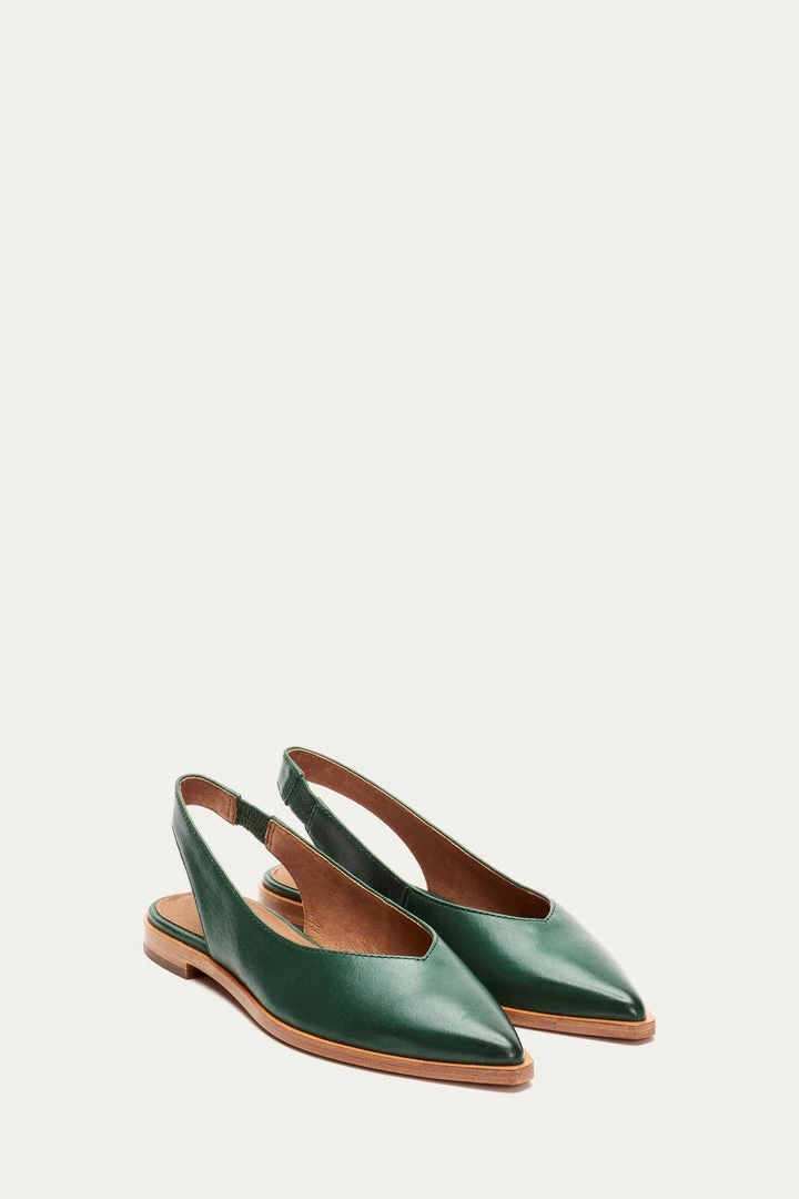 A stylish update for the iconic flat. This slingback is handmade from vegetable-tanned leather, treated for that vintage-inspired effect you love. Featuring a squared-off pointed toe, it boasts a distinctly modern feel. The softest-ever, full leather lining and cushioned footbeds deliver all-day comfort with a barely there feel.– Leather lined