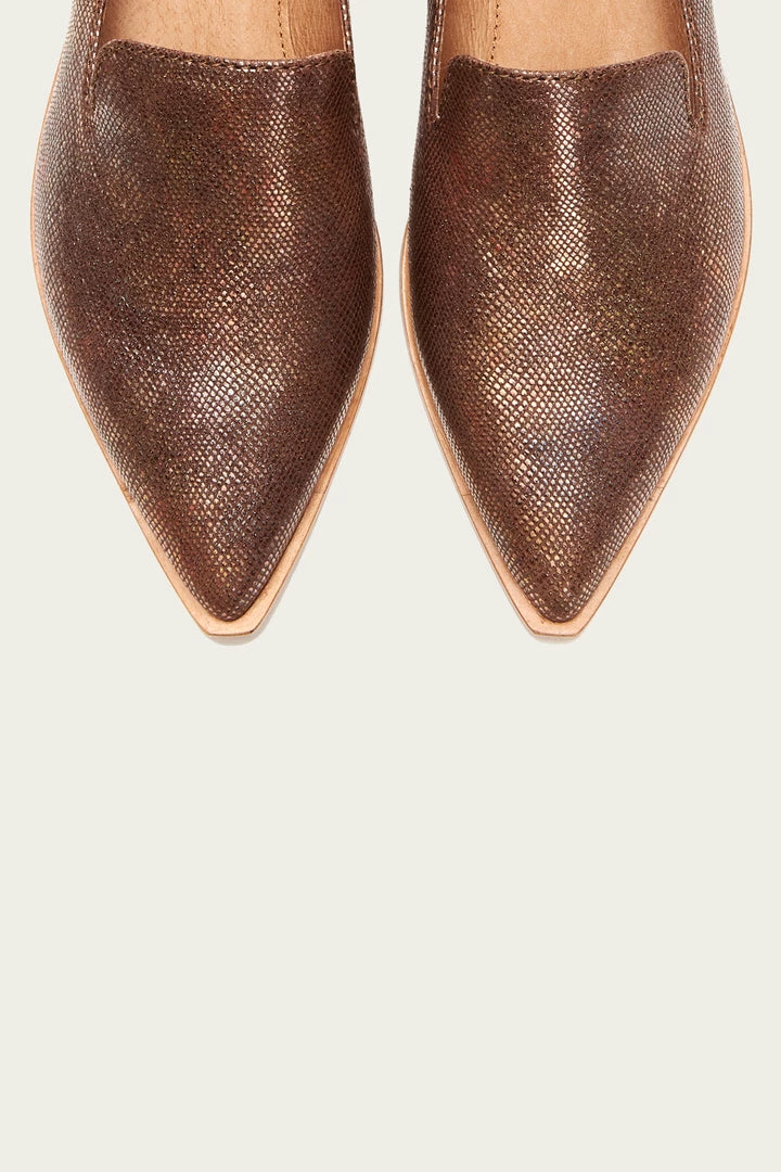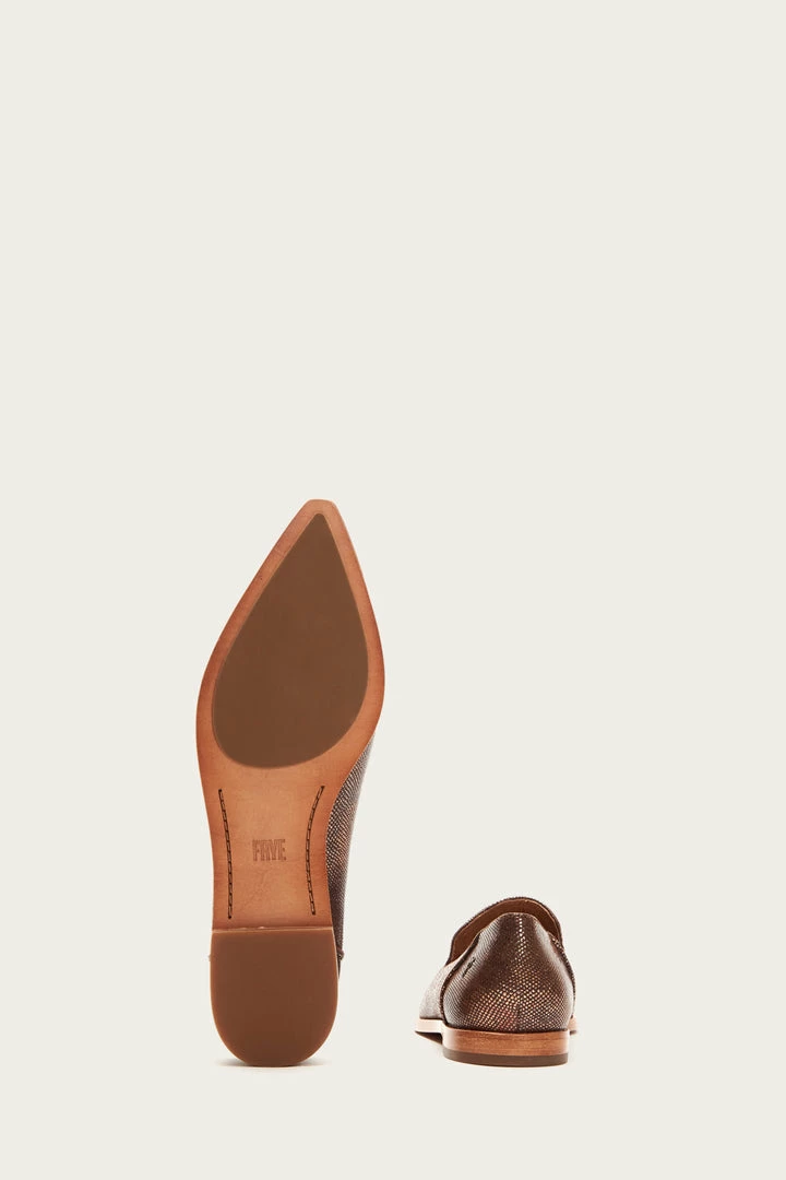 Simple and chic, this slip-on pair of ballerina-inspired flats has been crafted from foil embossed leather in a sleek pointed-toe shape. – Leather lined